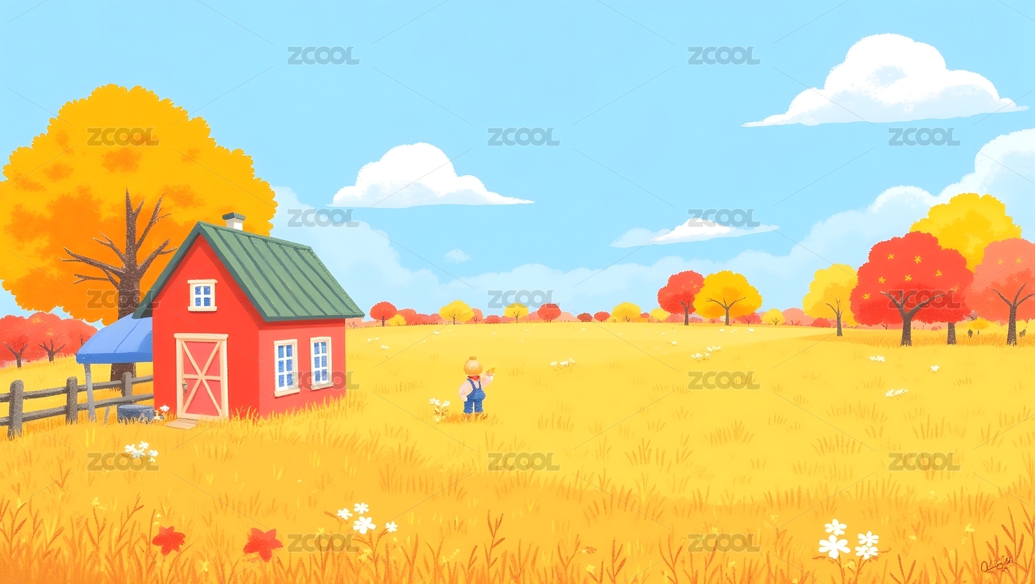 秋日田野与红房子