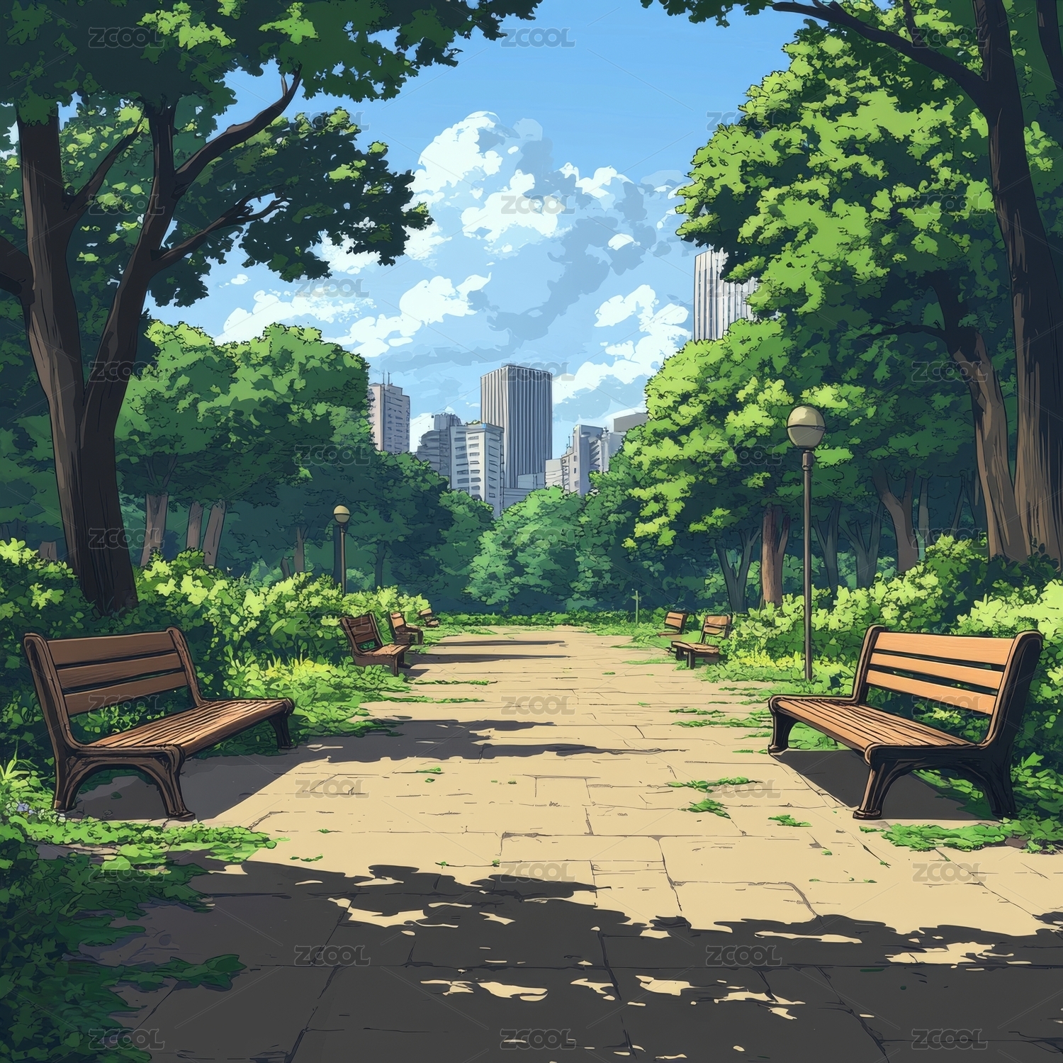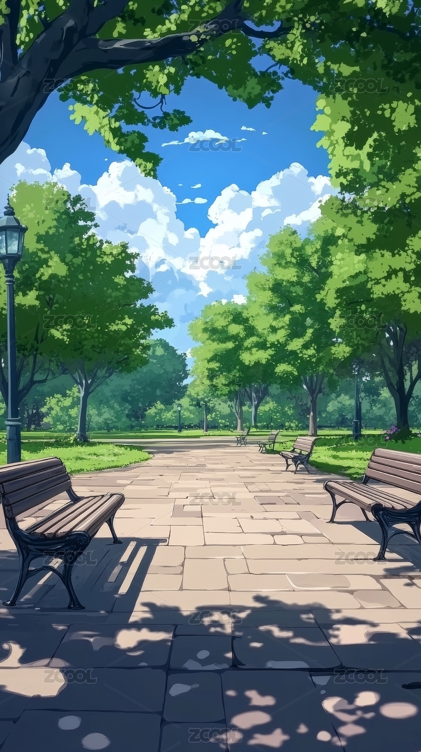 公园长椅夏日风景