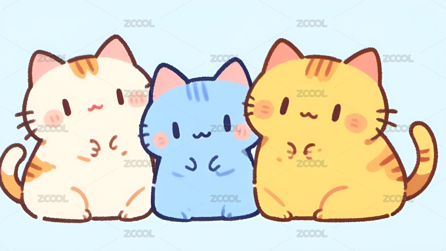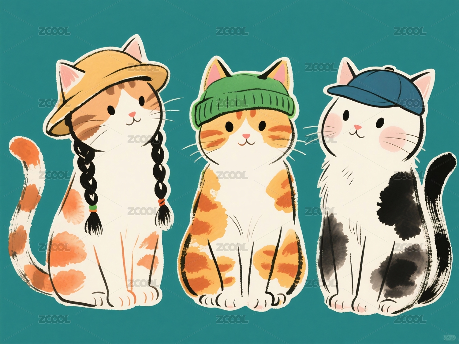 三只戴帽可爱猫咪卡通形象