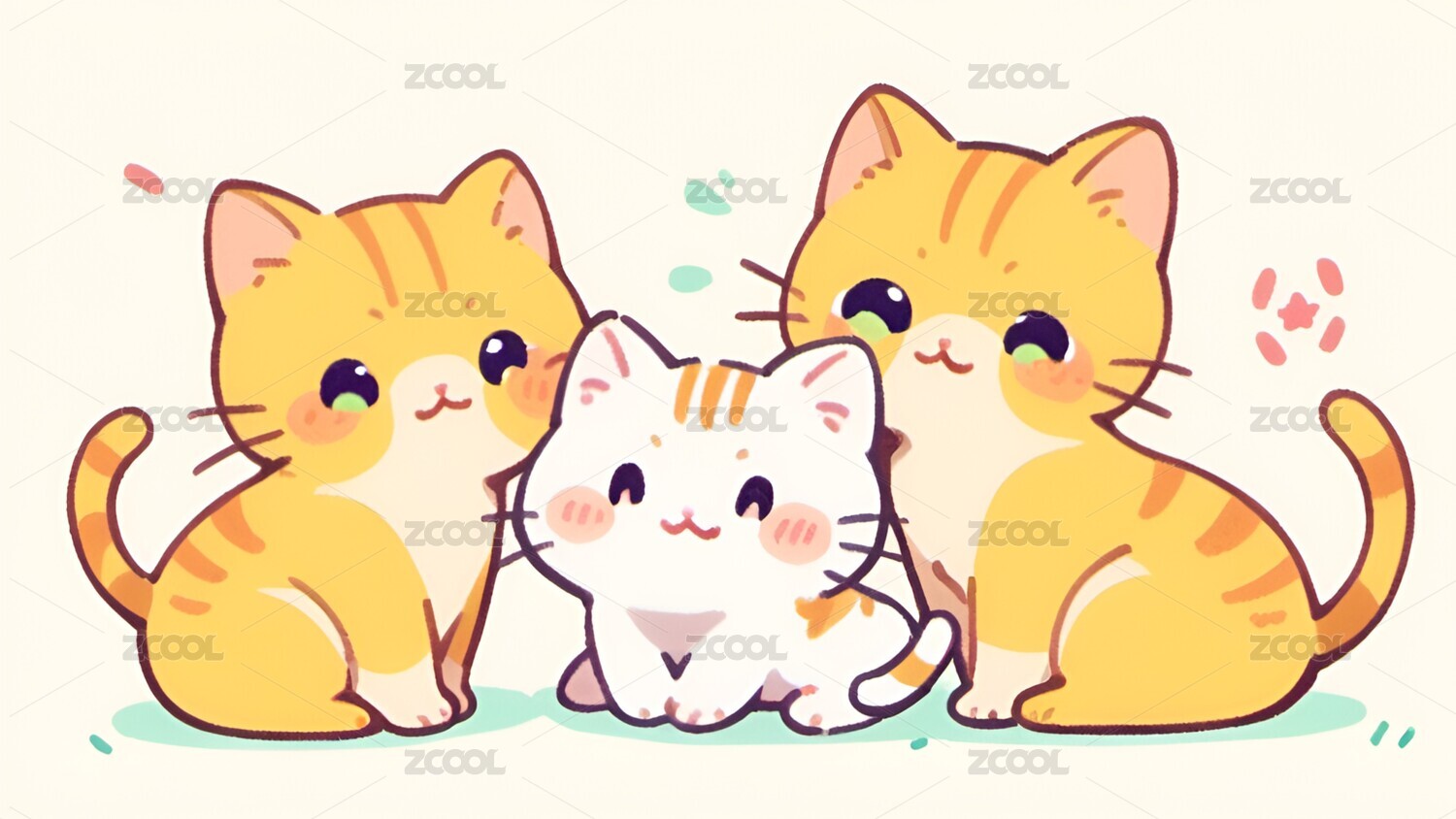 米色背景上几只可爱猫咪插画