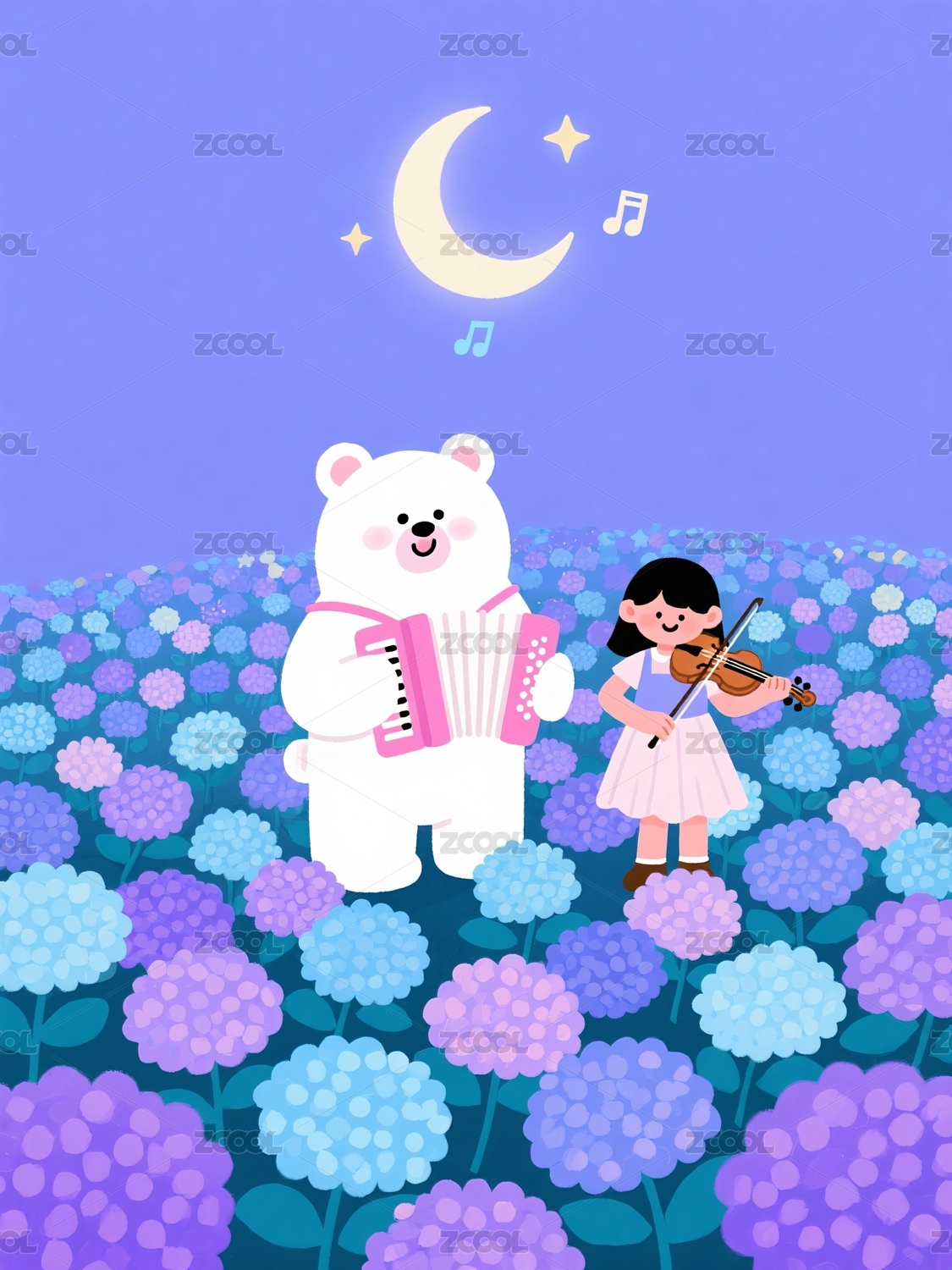 月下熊演奏女孩拉琴