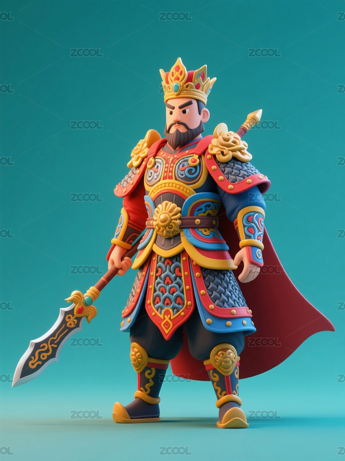 卡通关公手持青龙偃月刀