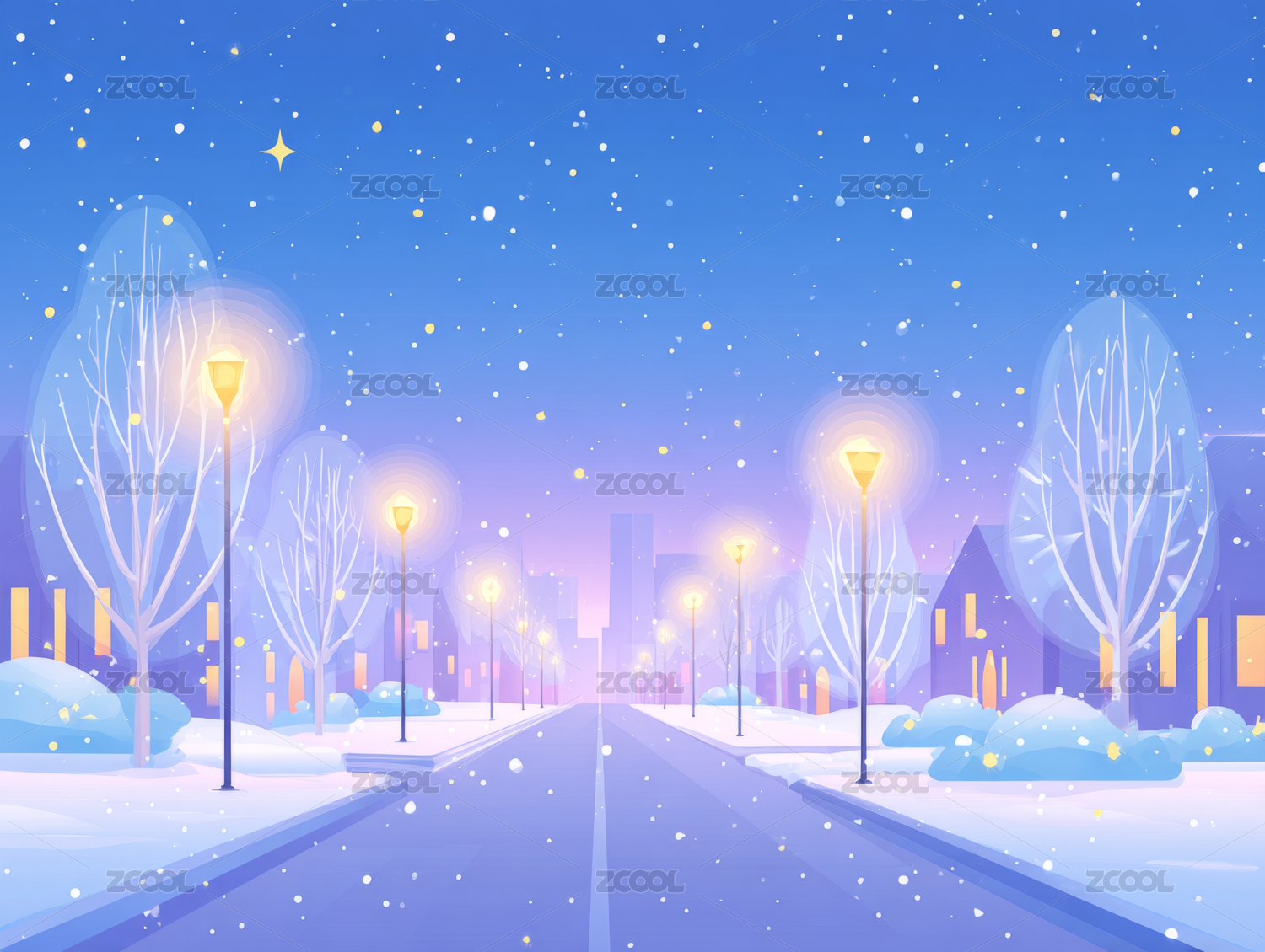 冬日城市雪景街道插画