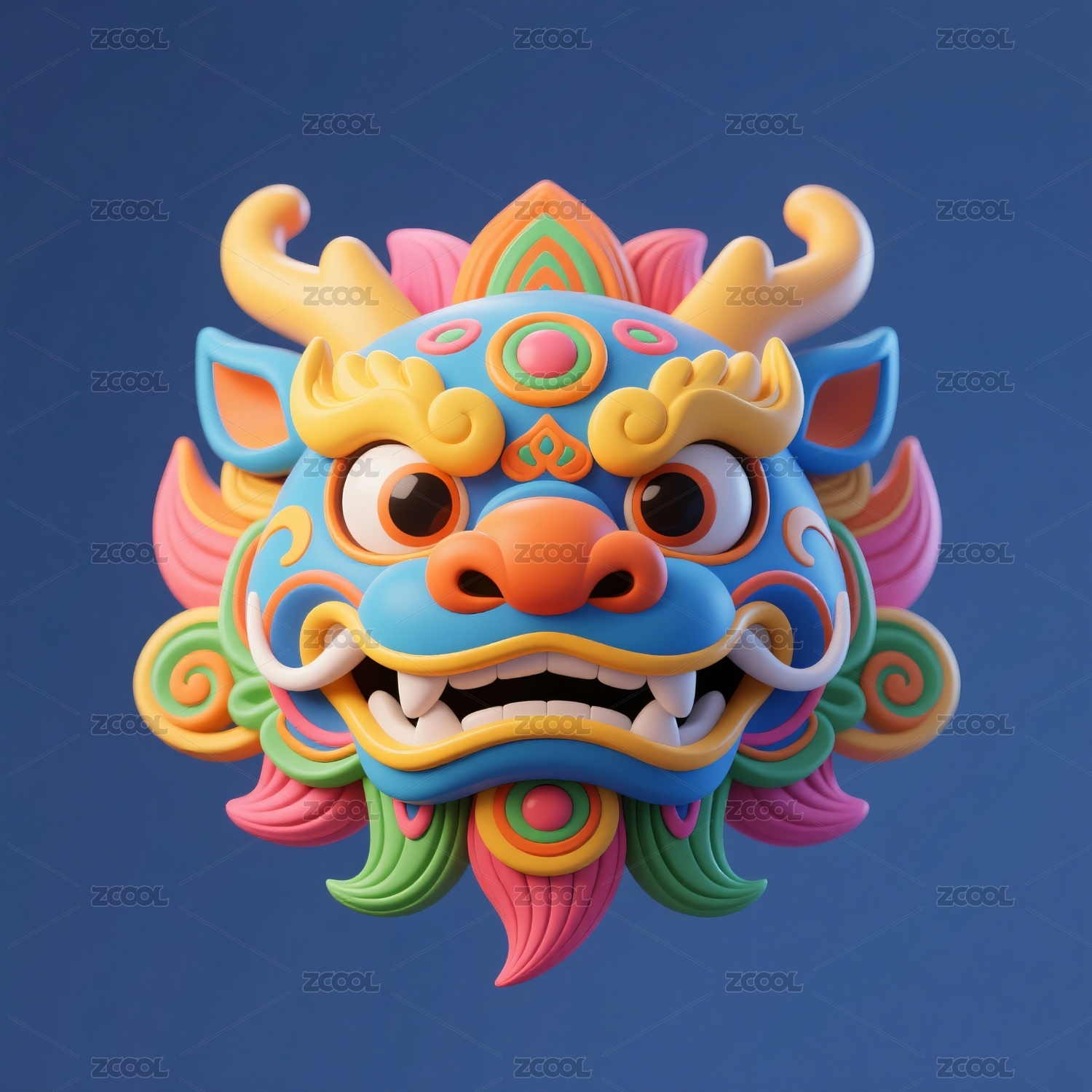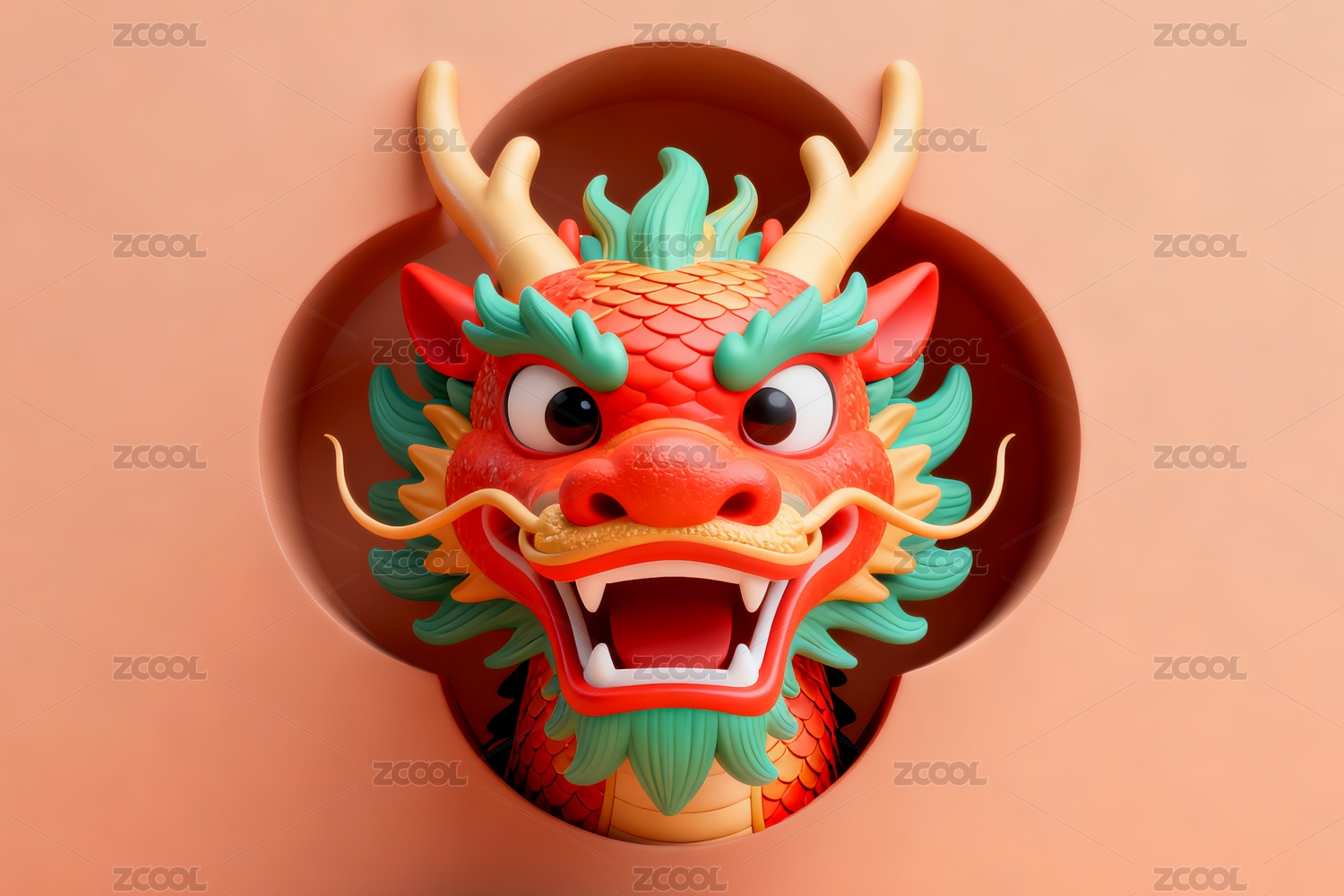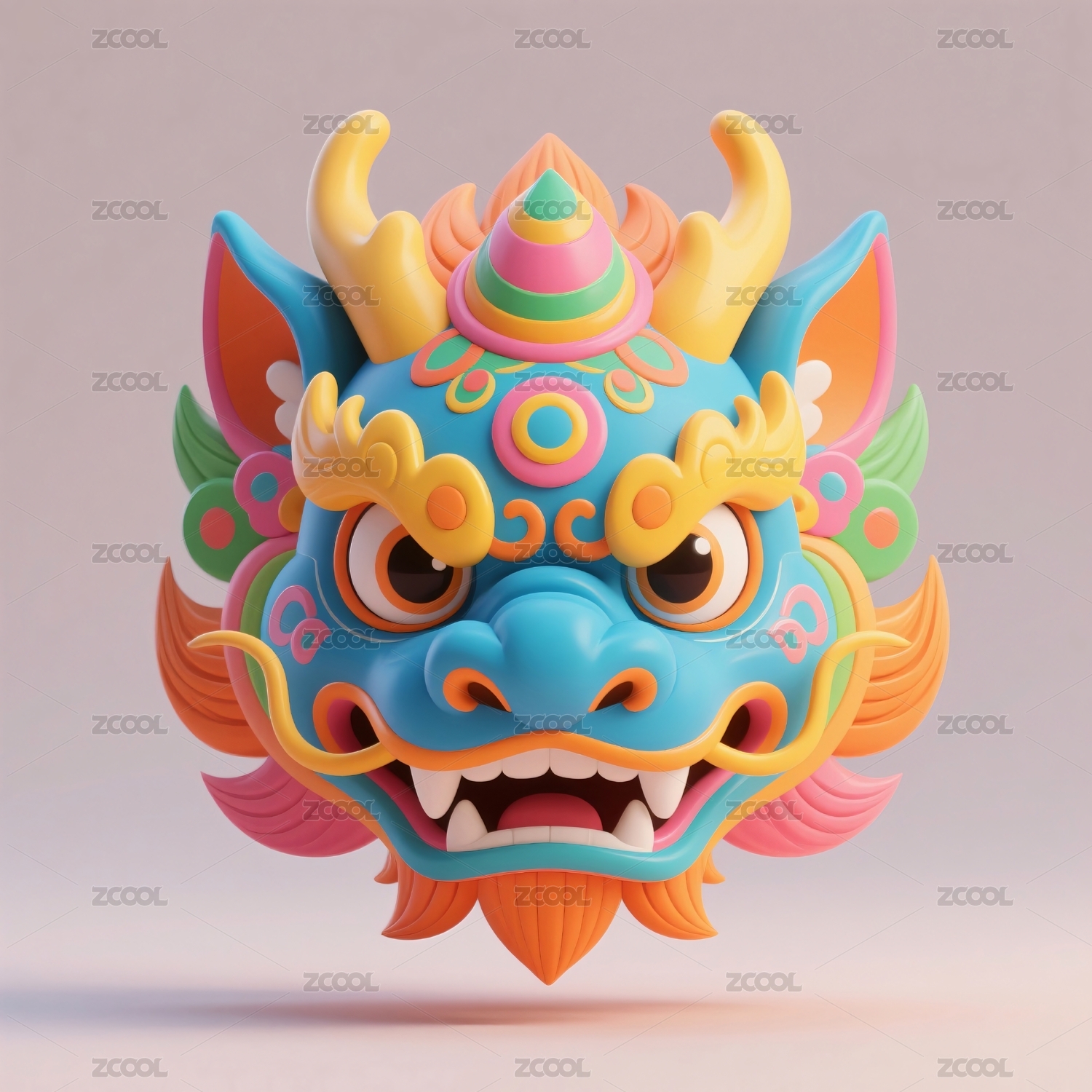 卡通彩色龙首立体呈现