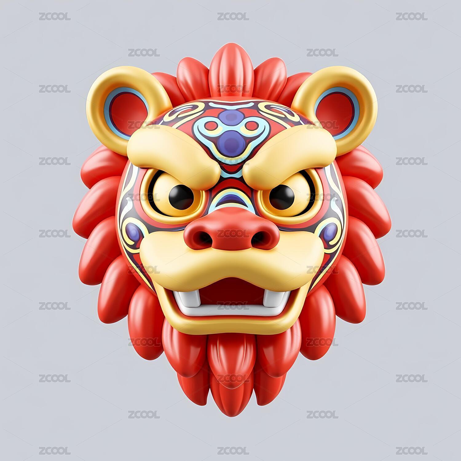 舞狮狮头插画