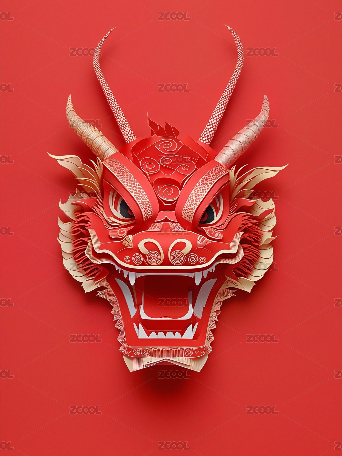 立体剪纸龙头
