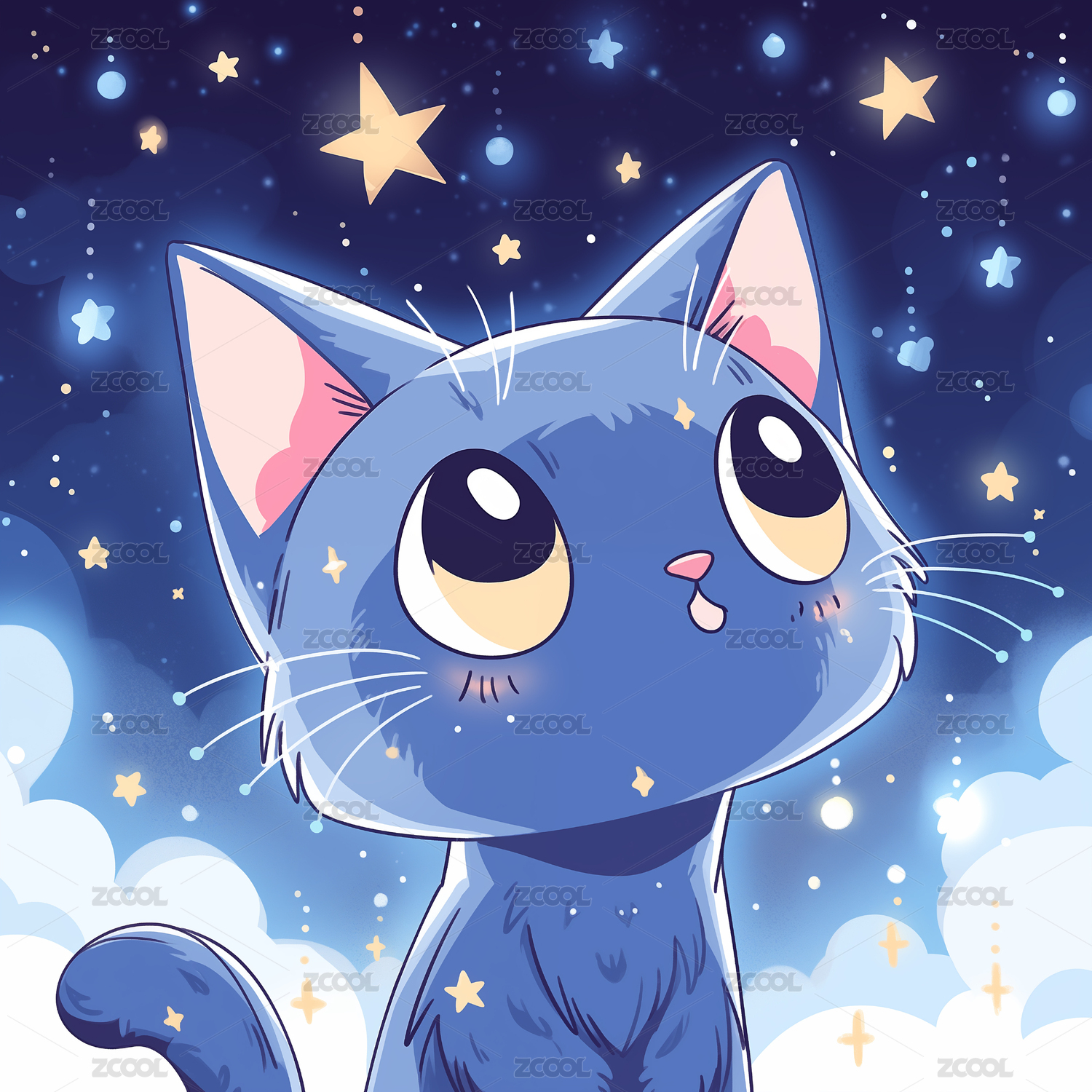 梦幻,幻想,猫咪,卡通,蓝色,甜美,爪子,眼睛,可爱,动物