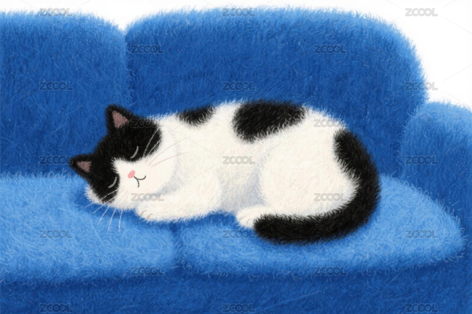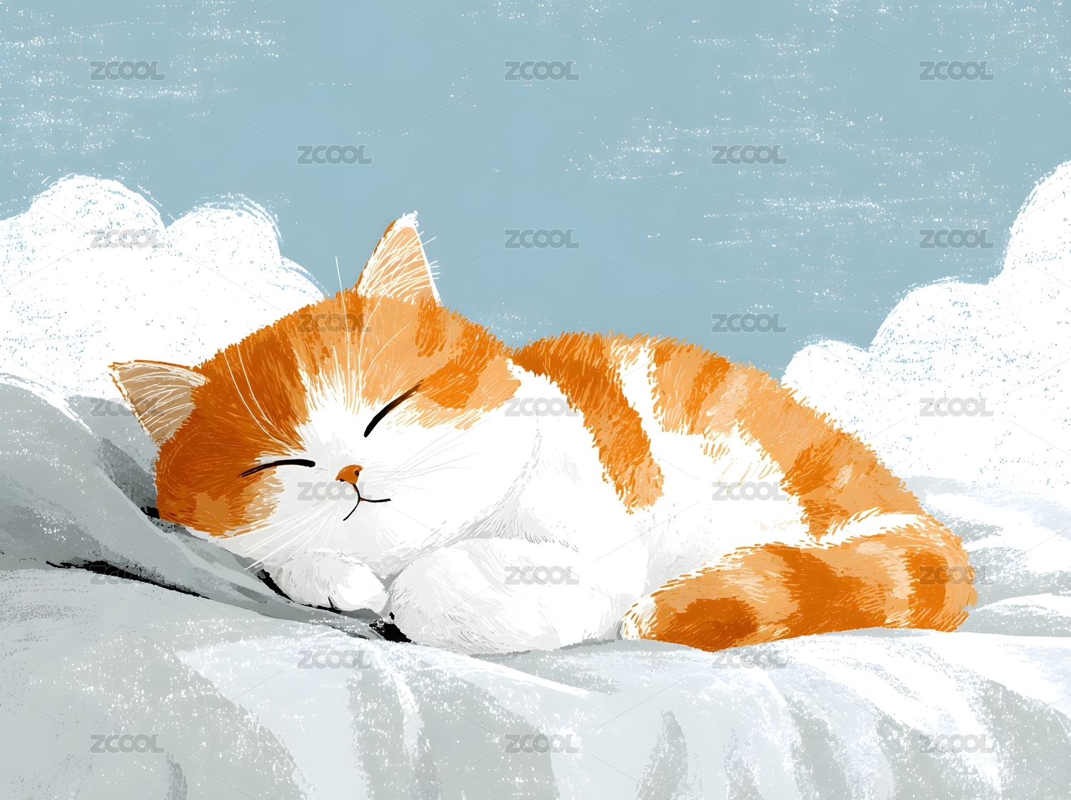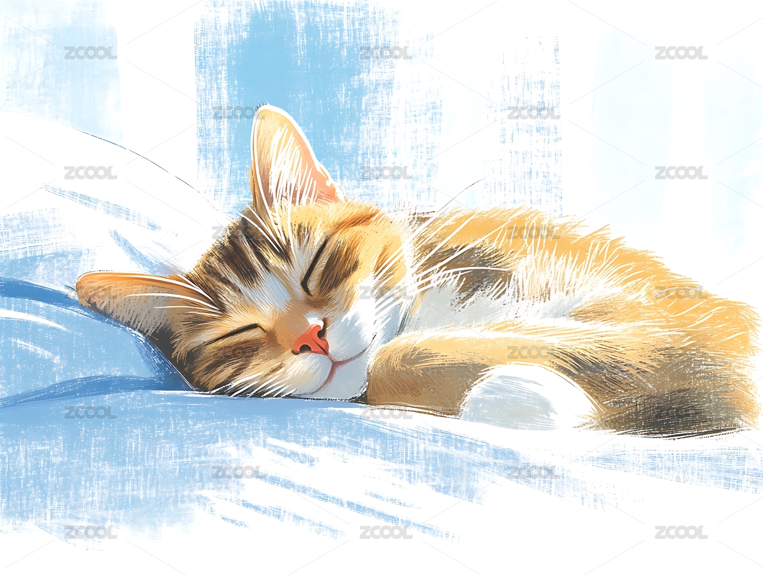 小猫,睡觉,枕头,蓝色,舒服,惬意,橙色,白色,休息,可爱