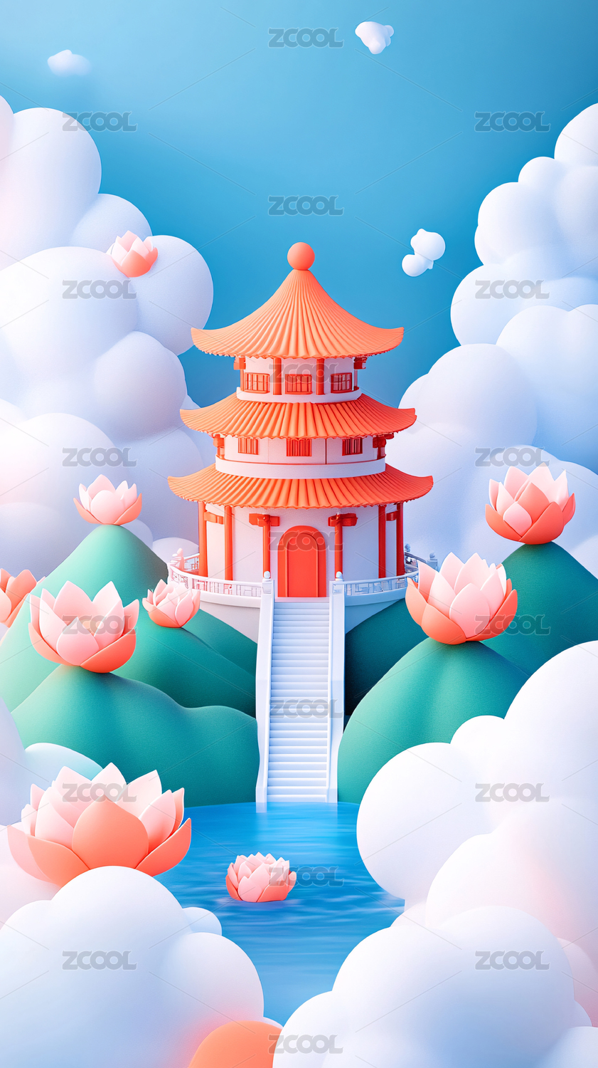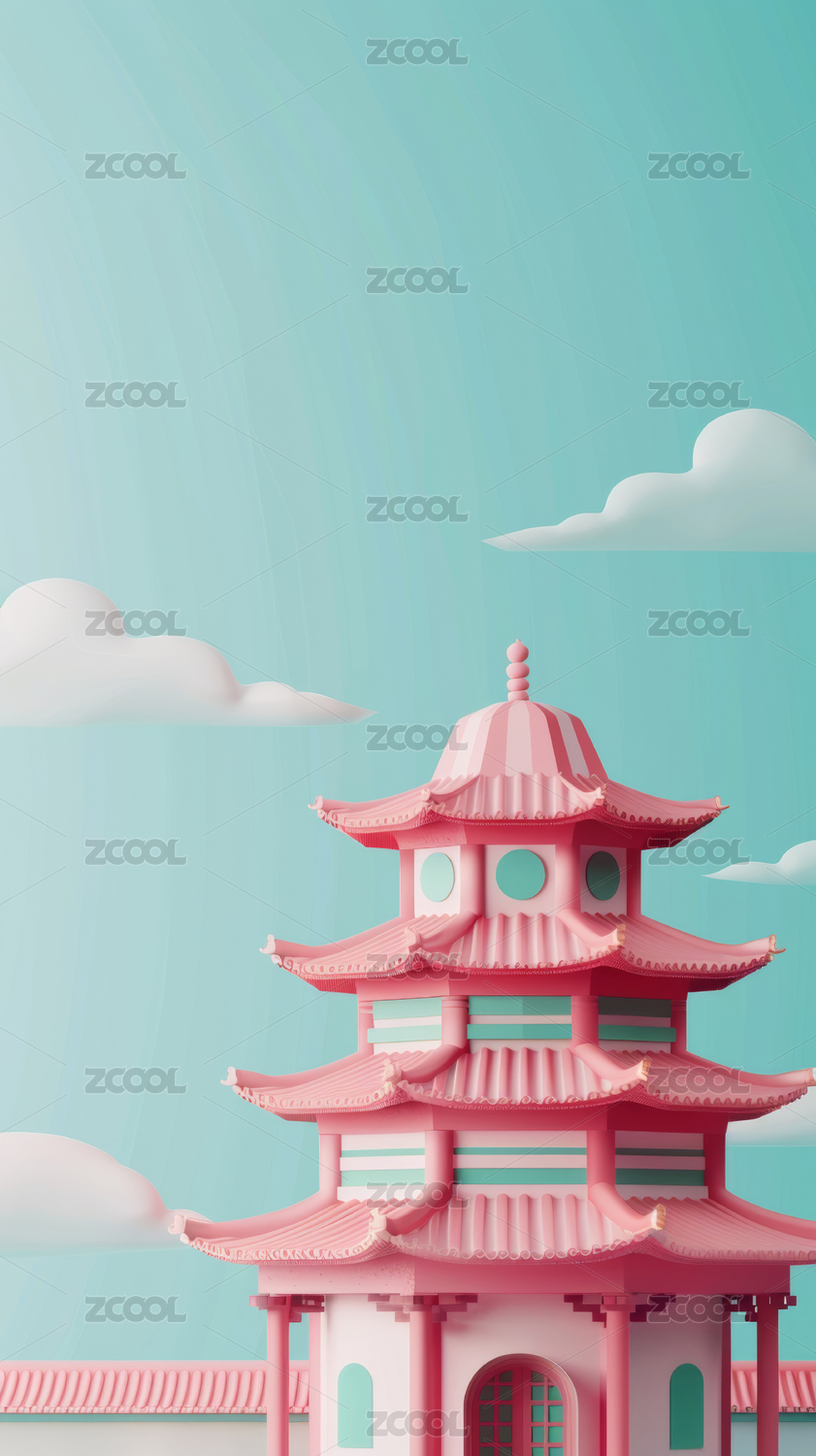 中国风古楼建筑传统国风古建筑国潮插画背景