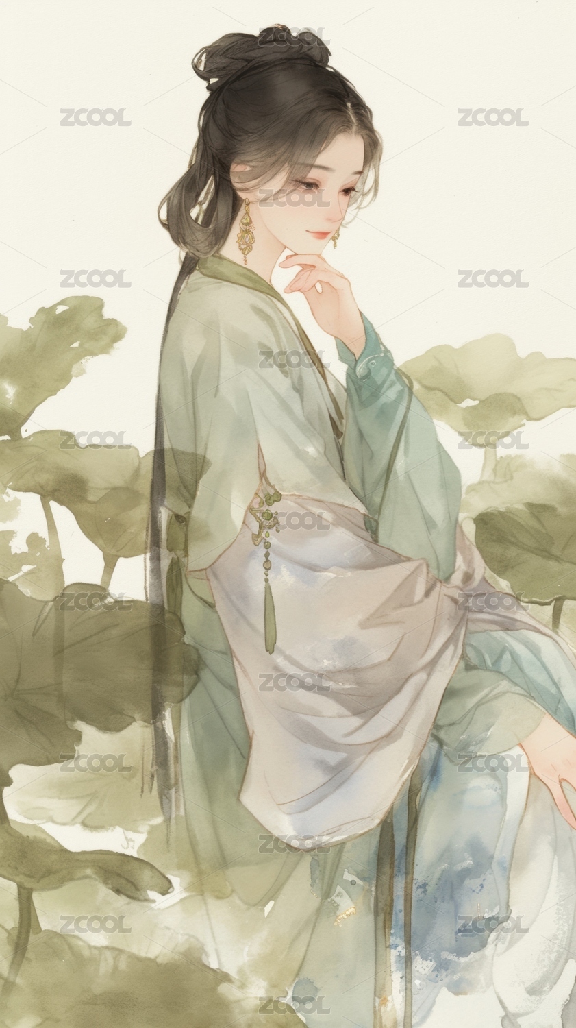 女子,姿态,绿色,头发,飘逸,美丽,优雅,唯美,装饰,意境