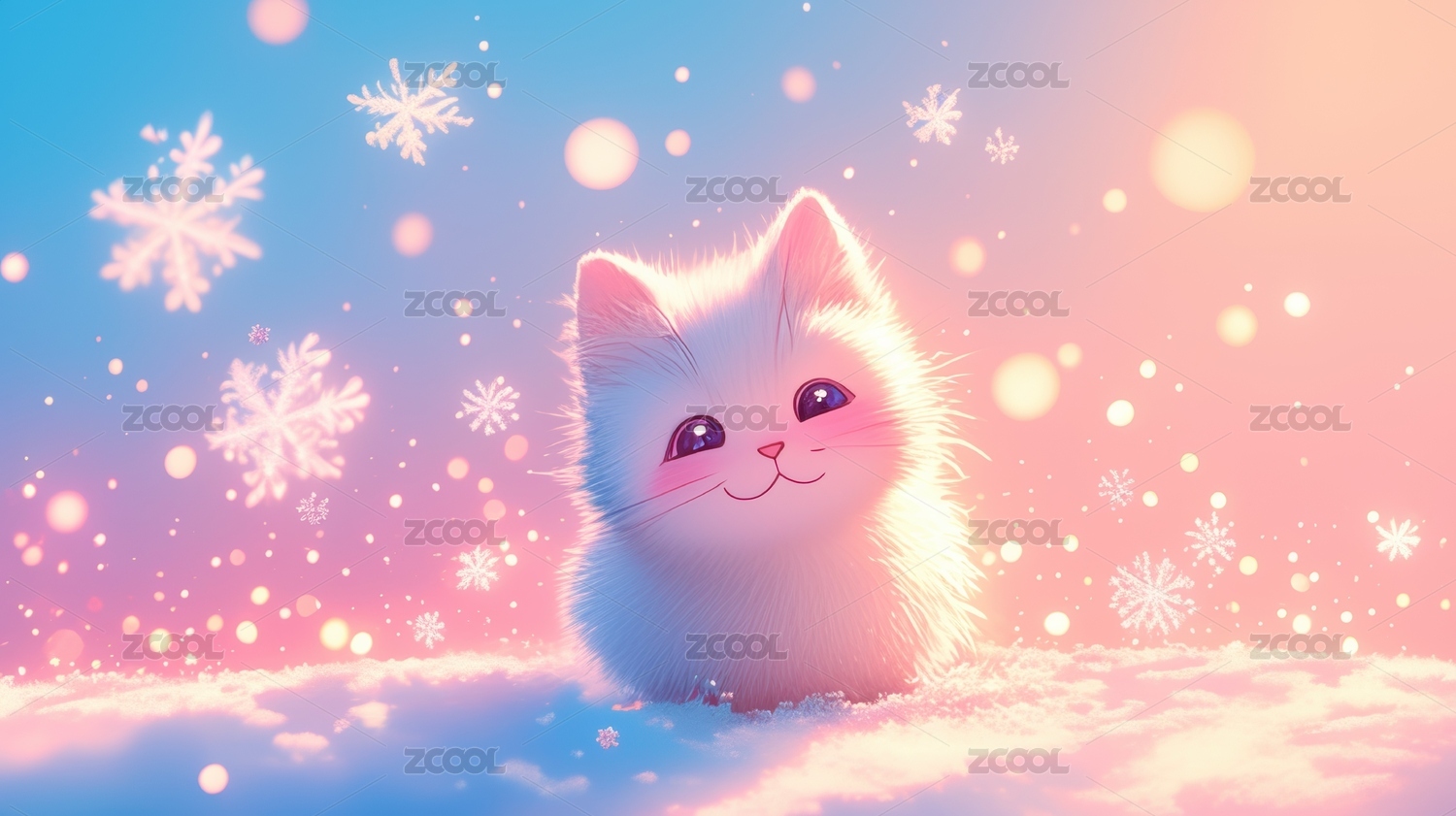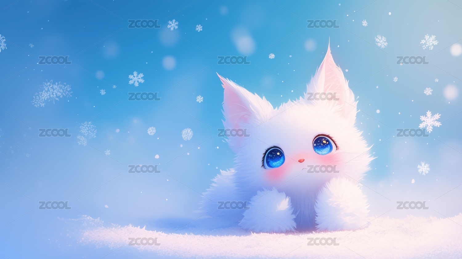 蓝色,可爱,柔软,猫咪,萌萌,卡通,白猫,冬天,雪花,树枝