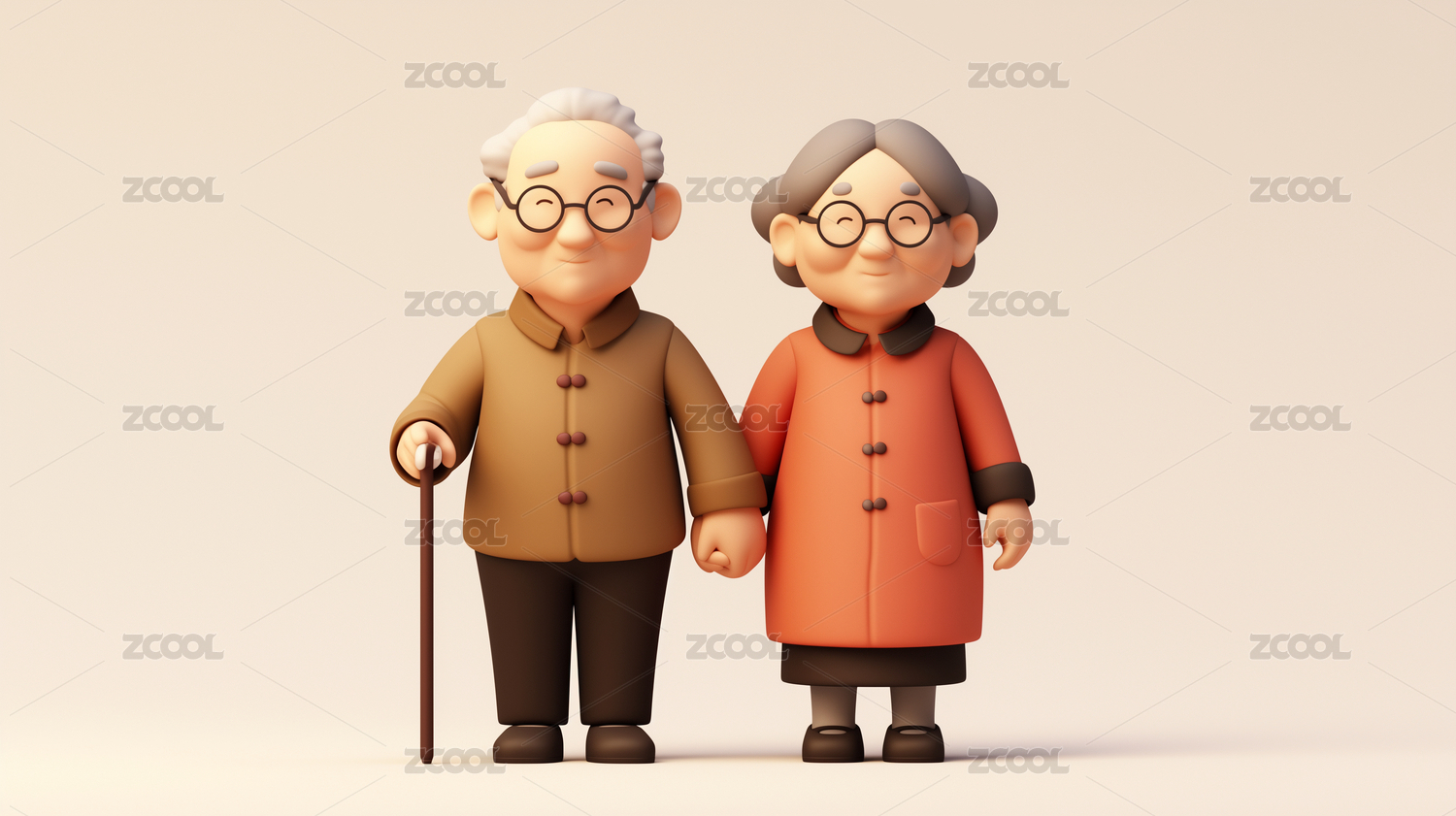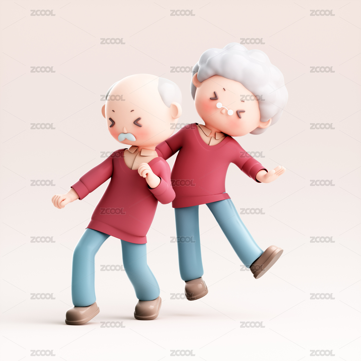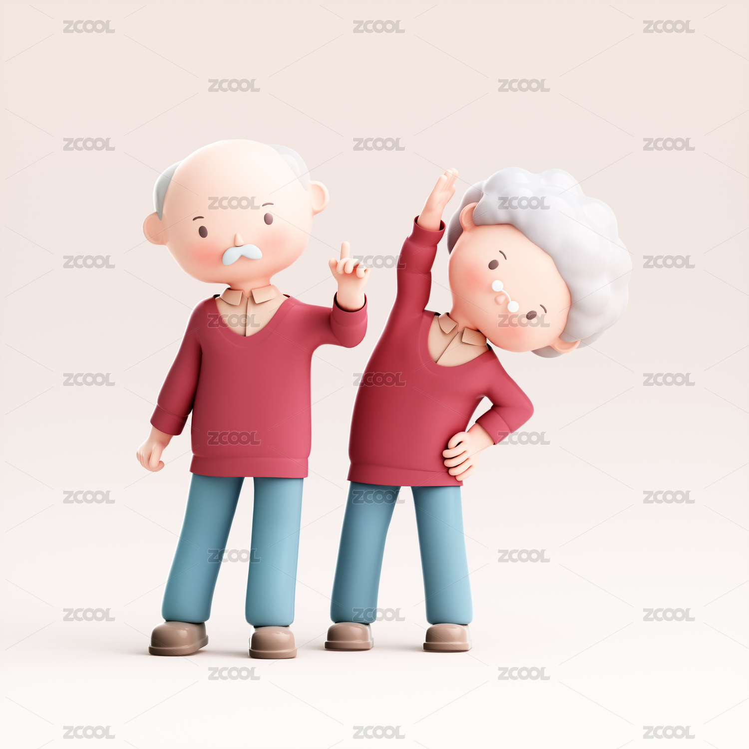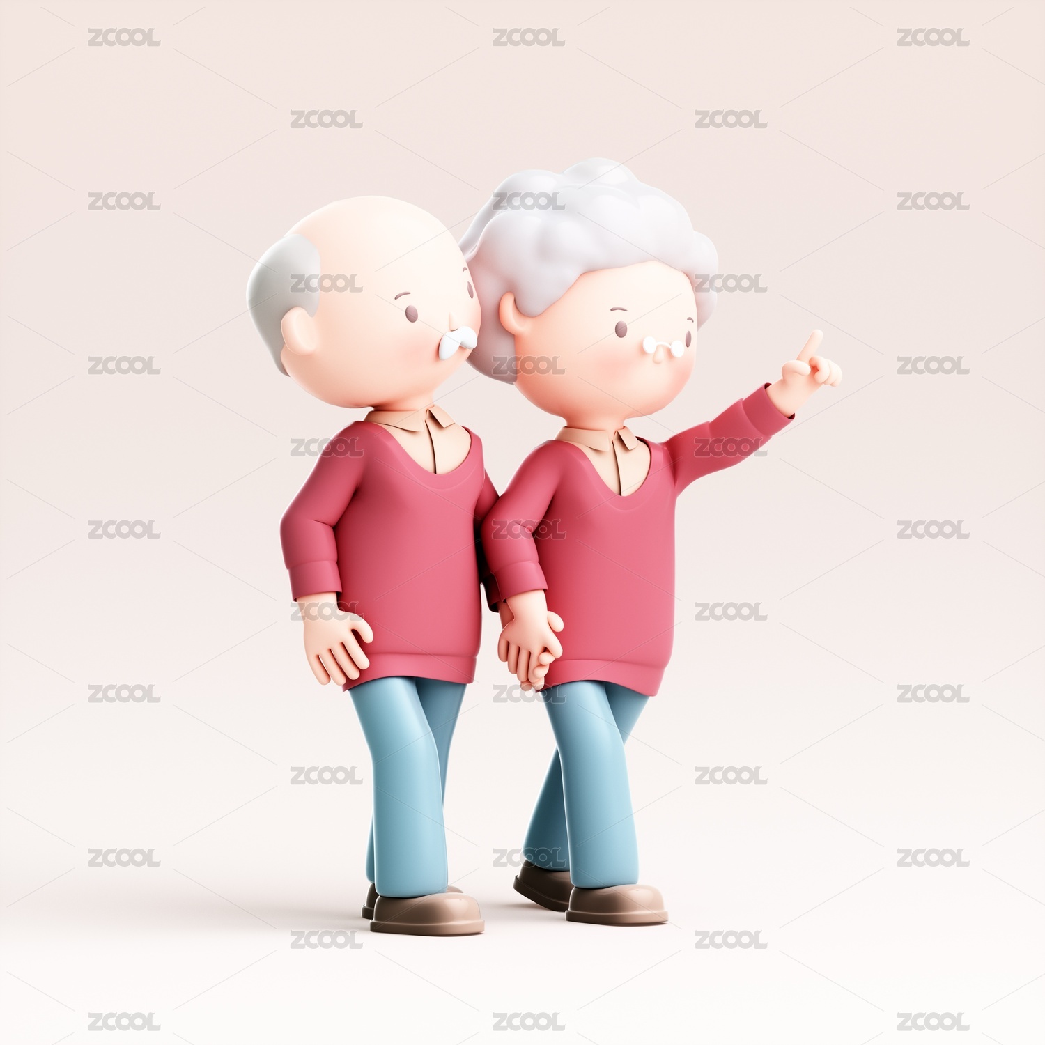 3d渲染两位老人插画