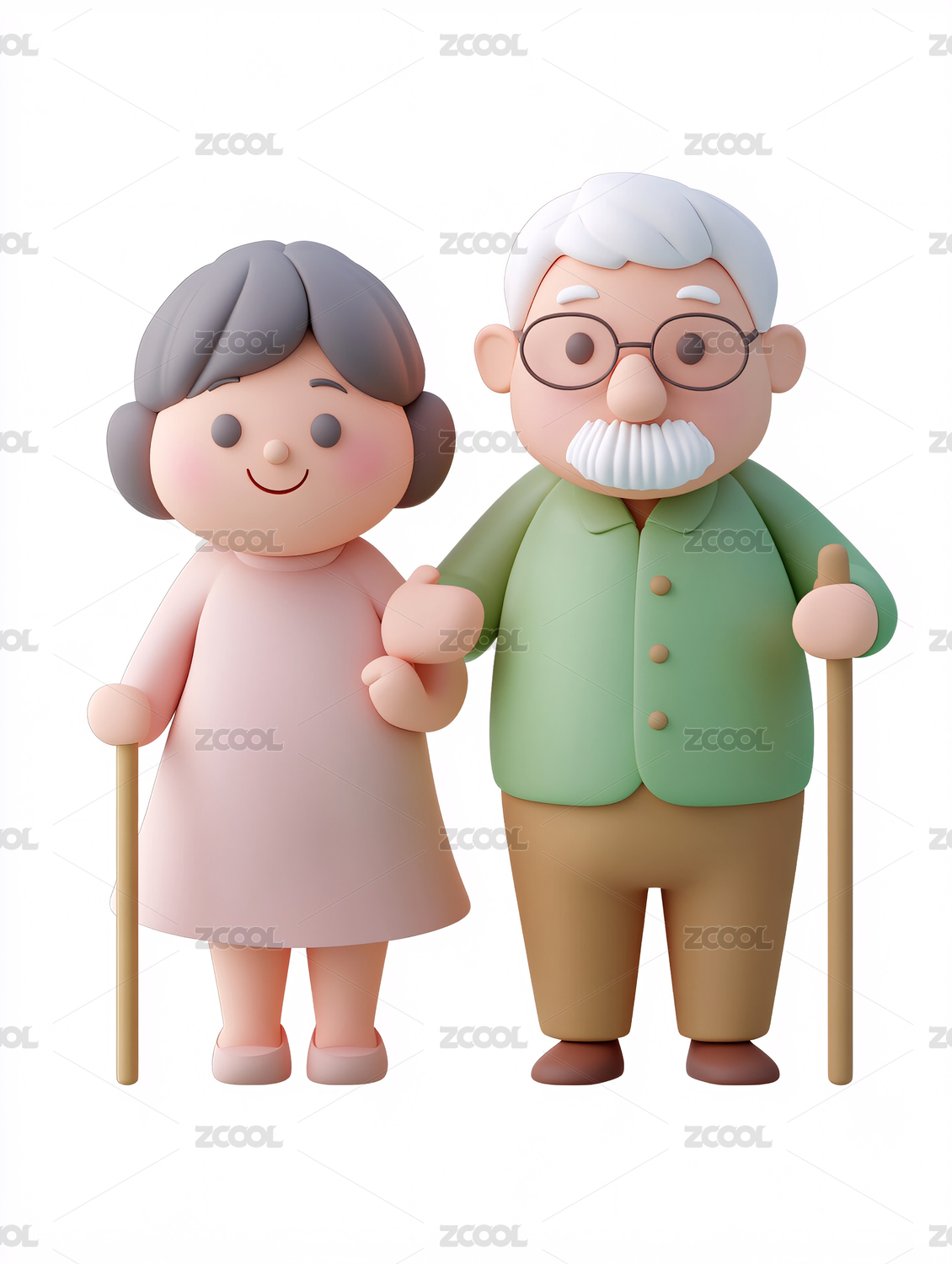 两位老人3d插画