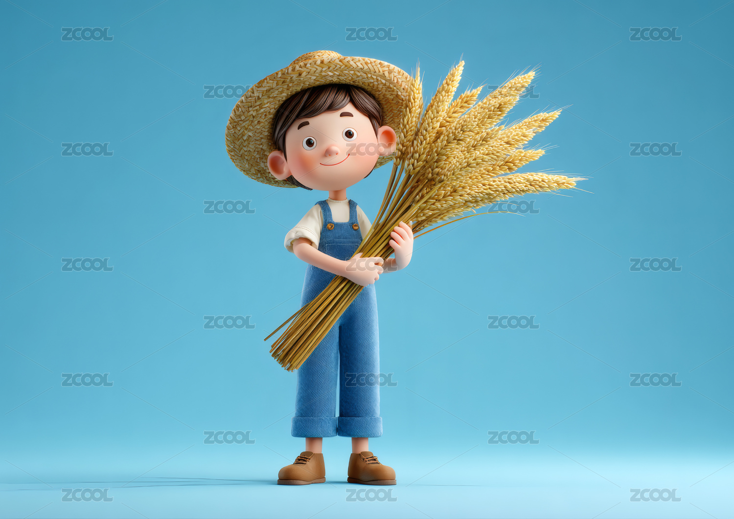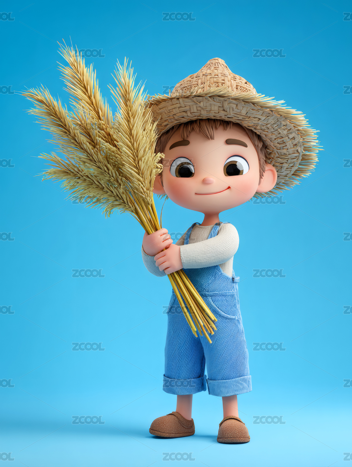 卡通3D农业农民麦穗