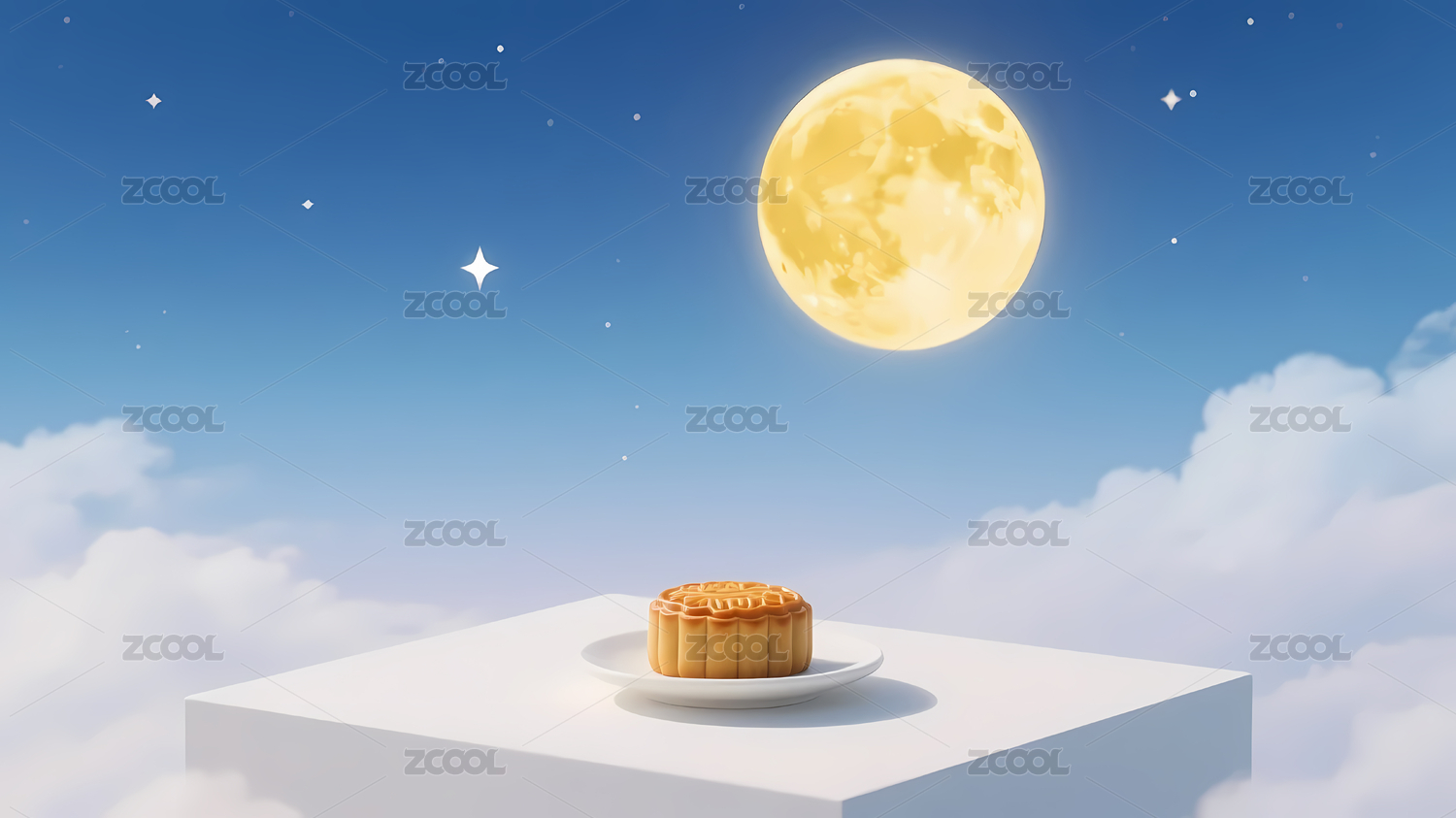 月饼夜空明月白云背景