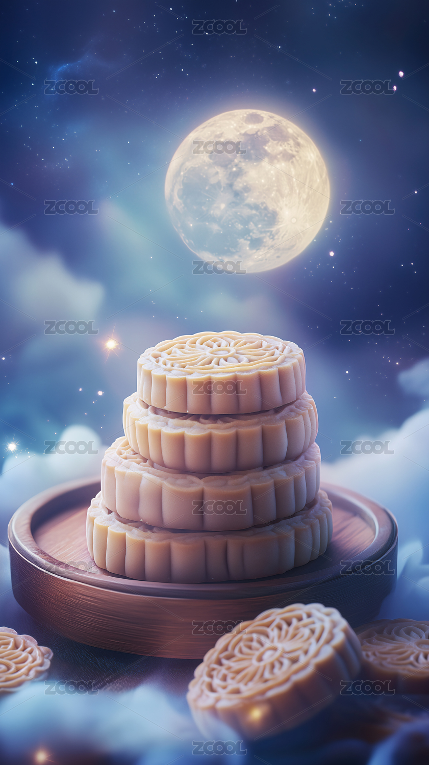 中秋节月亮与月饼背景