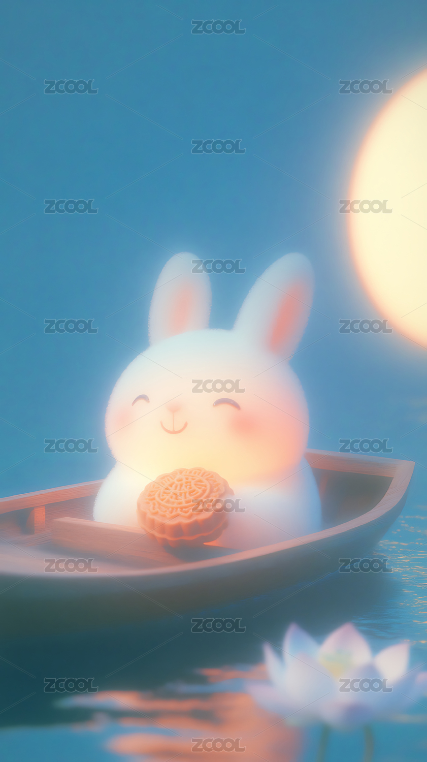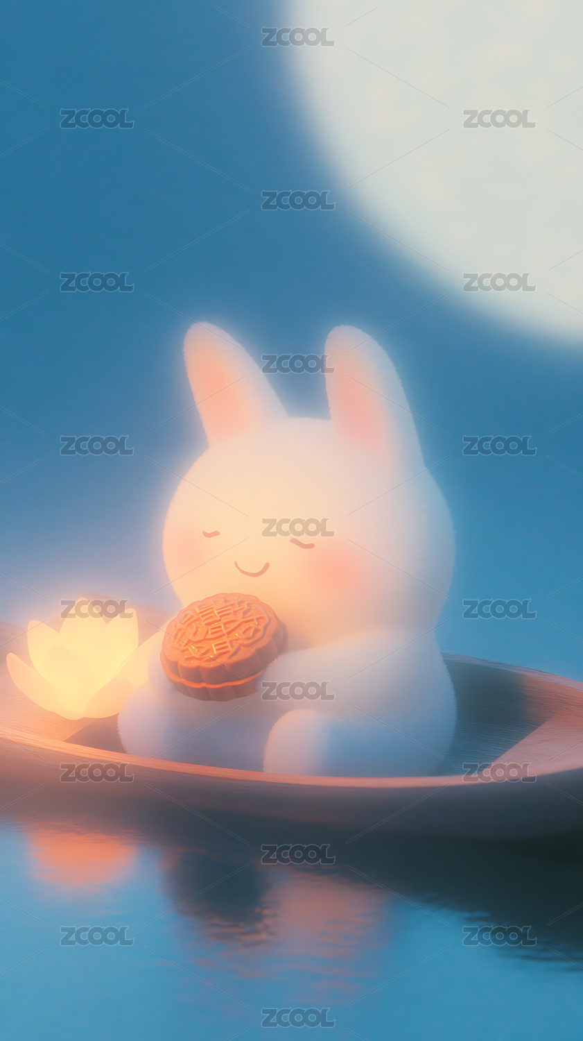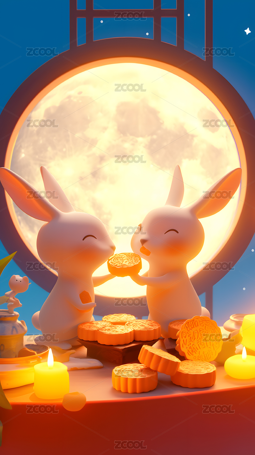 3d,卡通,中秋节,背景,壁纸,留白,月亮,团圆,希望,可爱