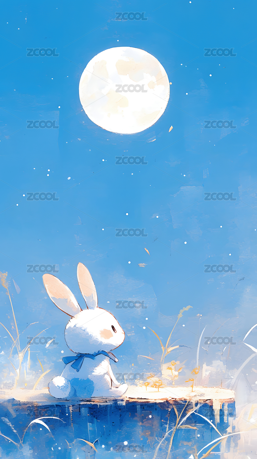 3d,卡通,中秋节,背景,壁纸,留白,月亮,团圆,希望,可爱