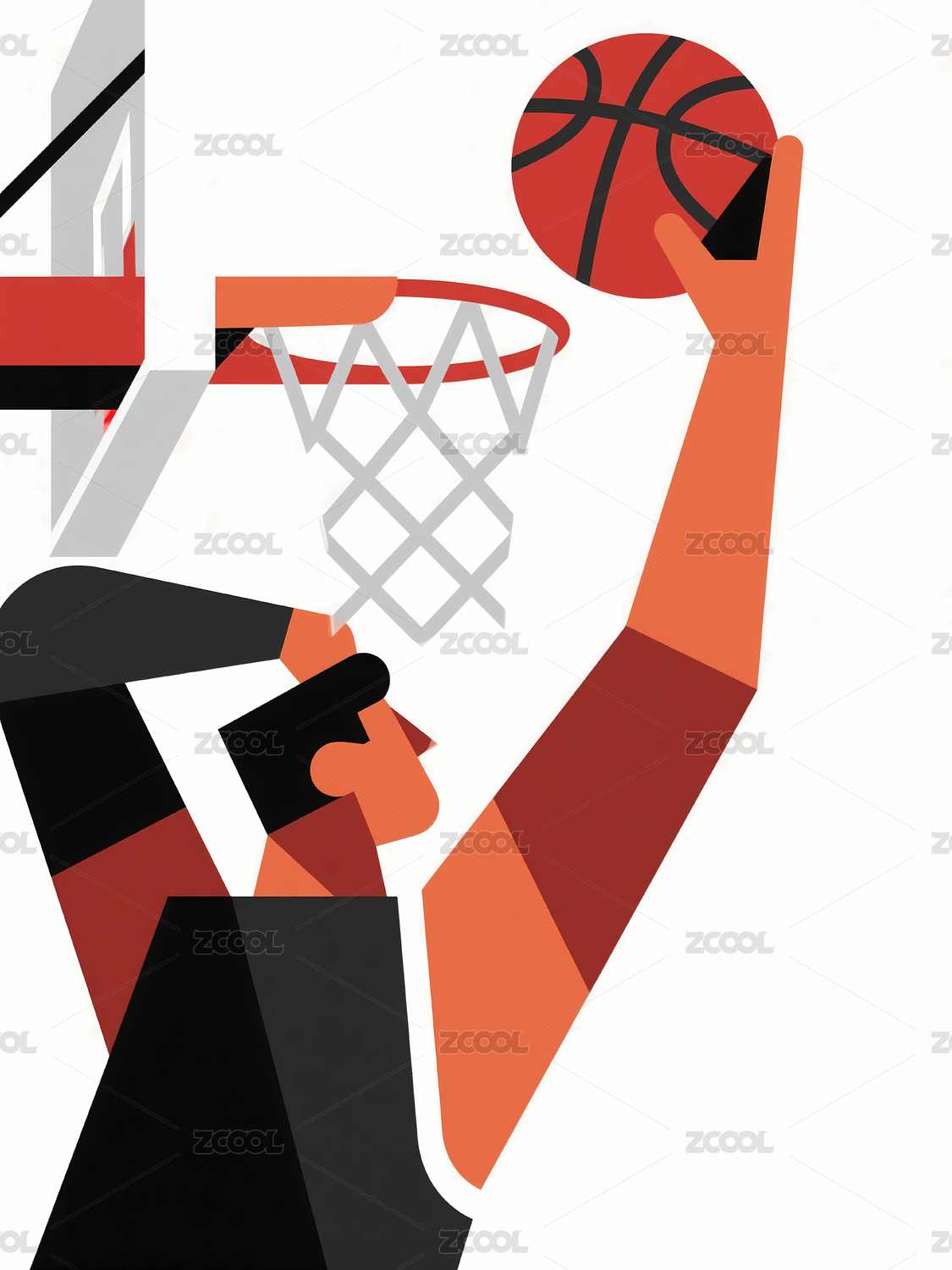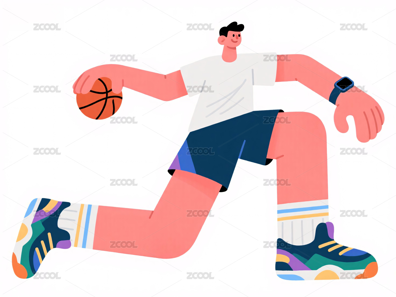 卡通人物持篮球奔跑