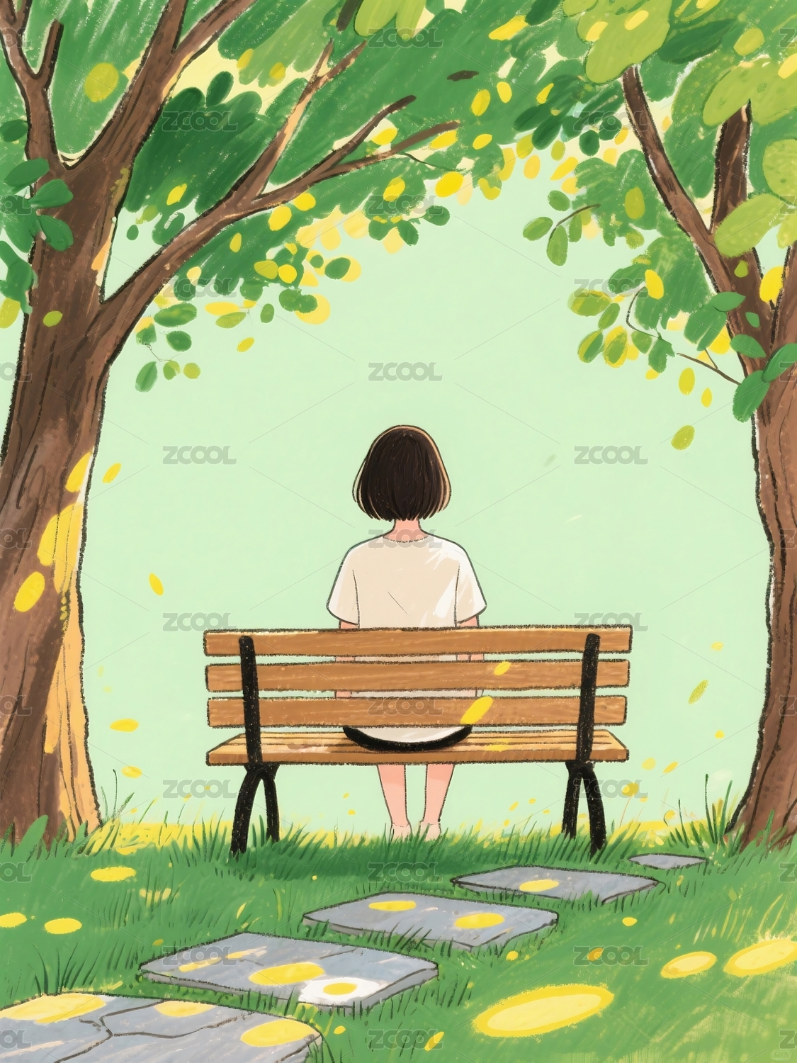 树下的女孩日漫风插画