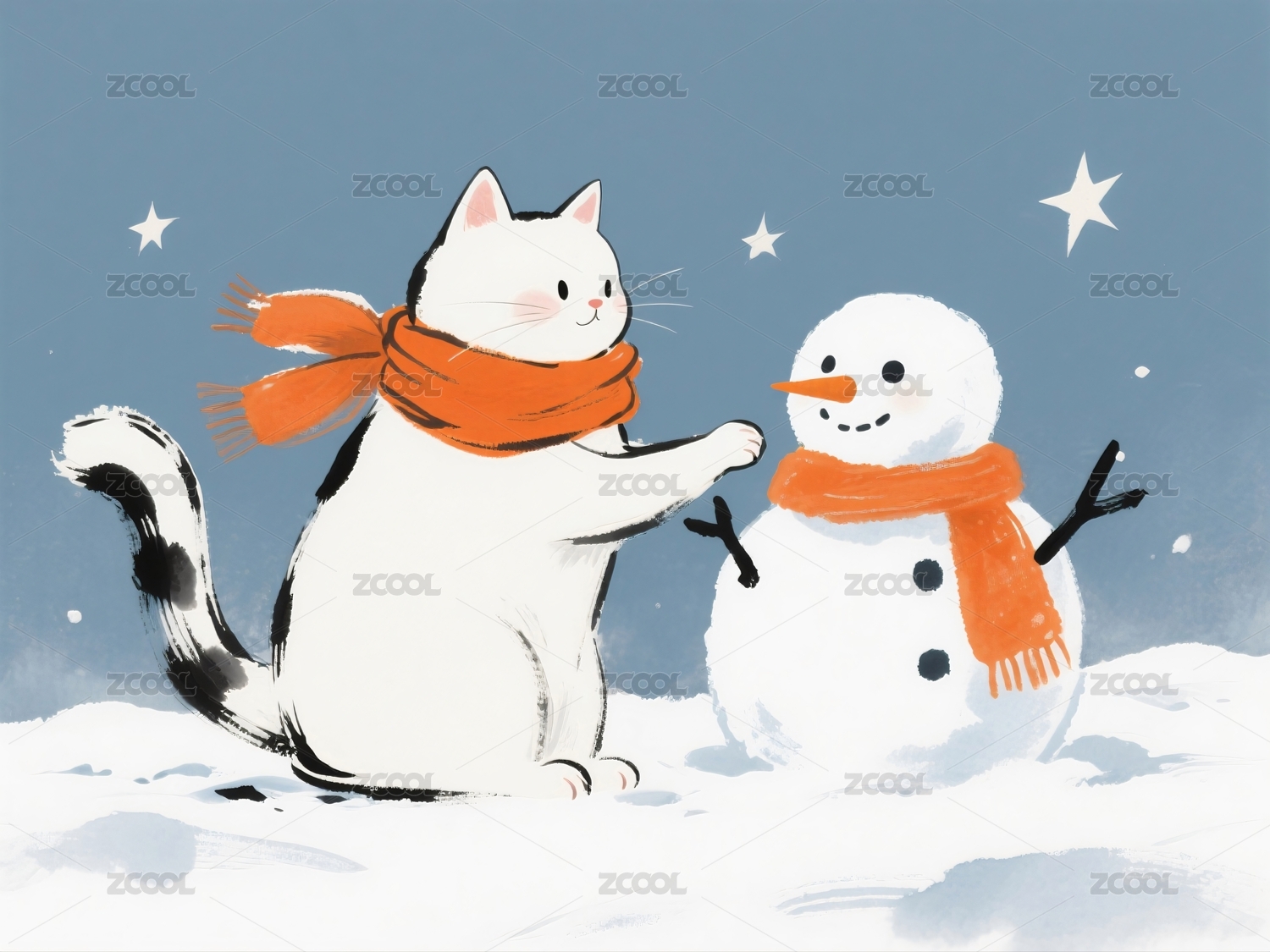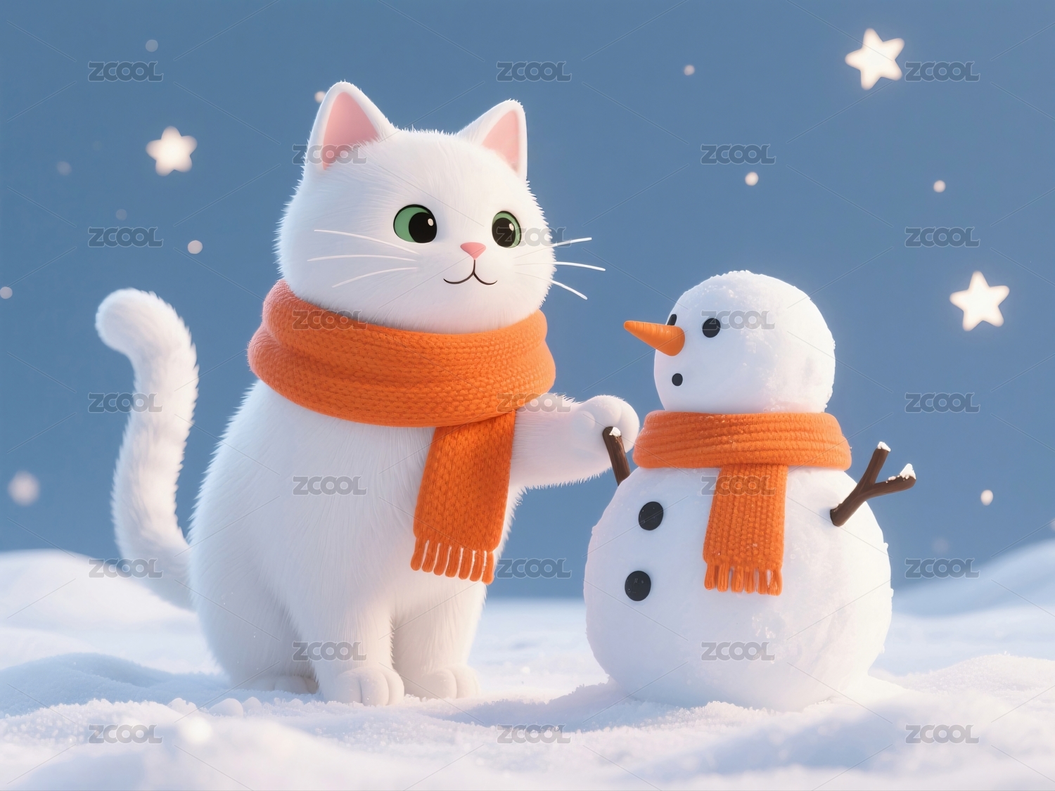 猫咪,卡通,可爱,开心,小猫,伙伴,眼睛,玩耍,互动,围巾