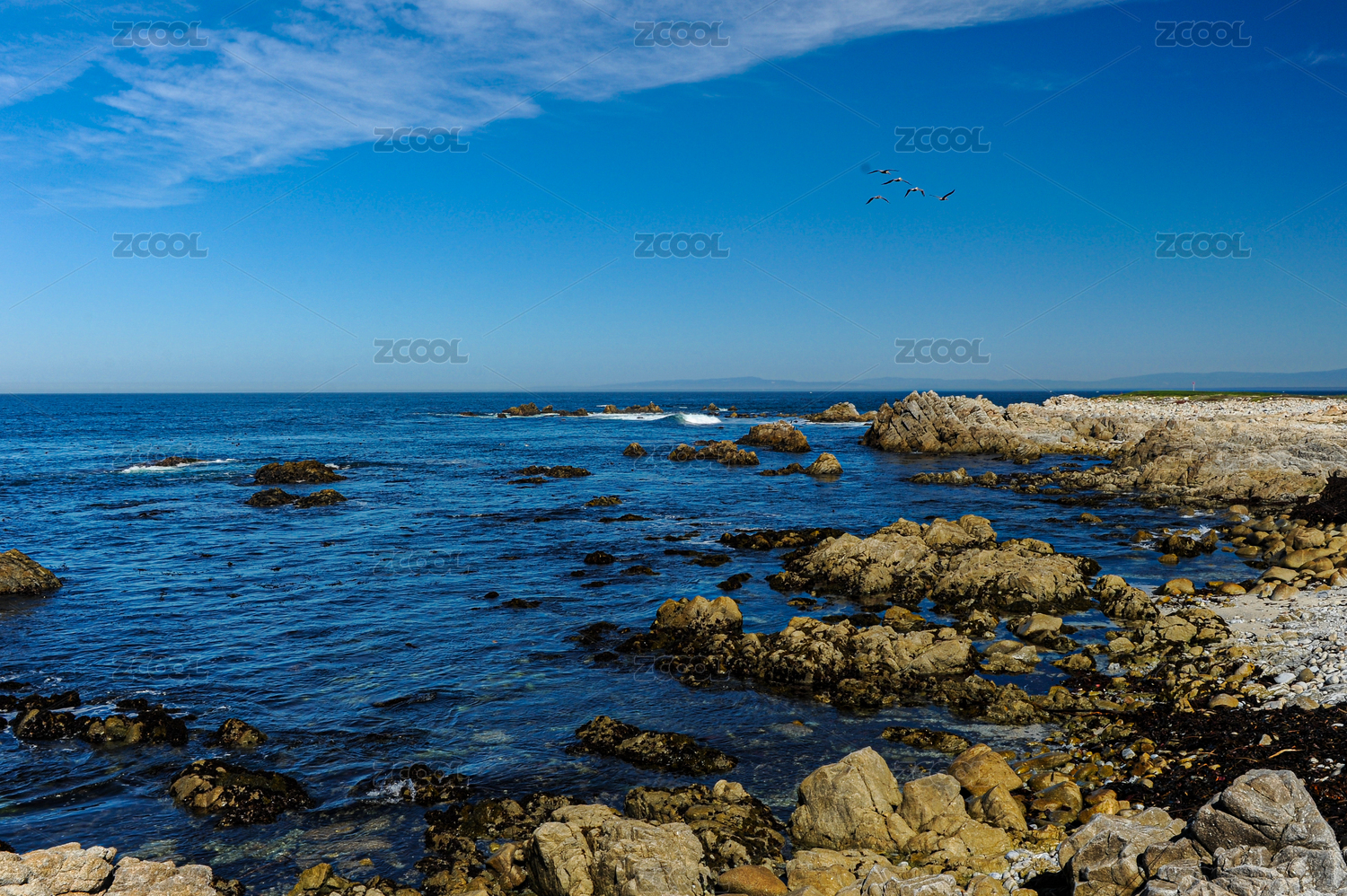 加州一号公路,太平洋,海景,秋日,深蓝,天空,地平线,山脉,礁石,浪花