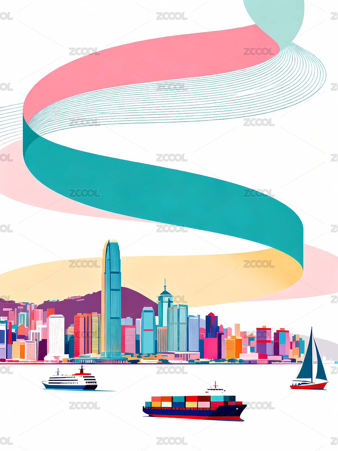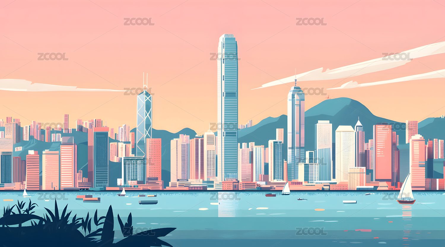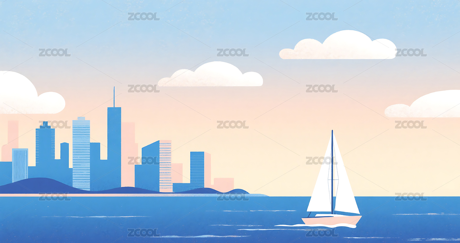 自然, 风景, 艺术, 简约, 插画, 背景, 元素, 天空, 云朵, 建筑