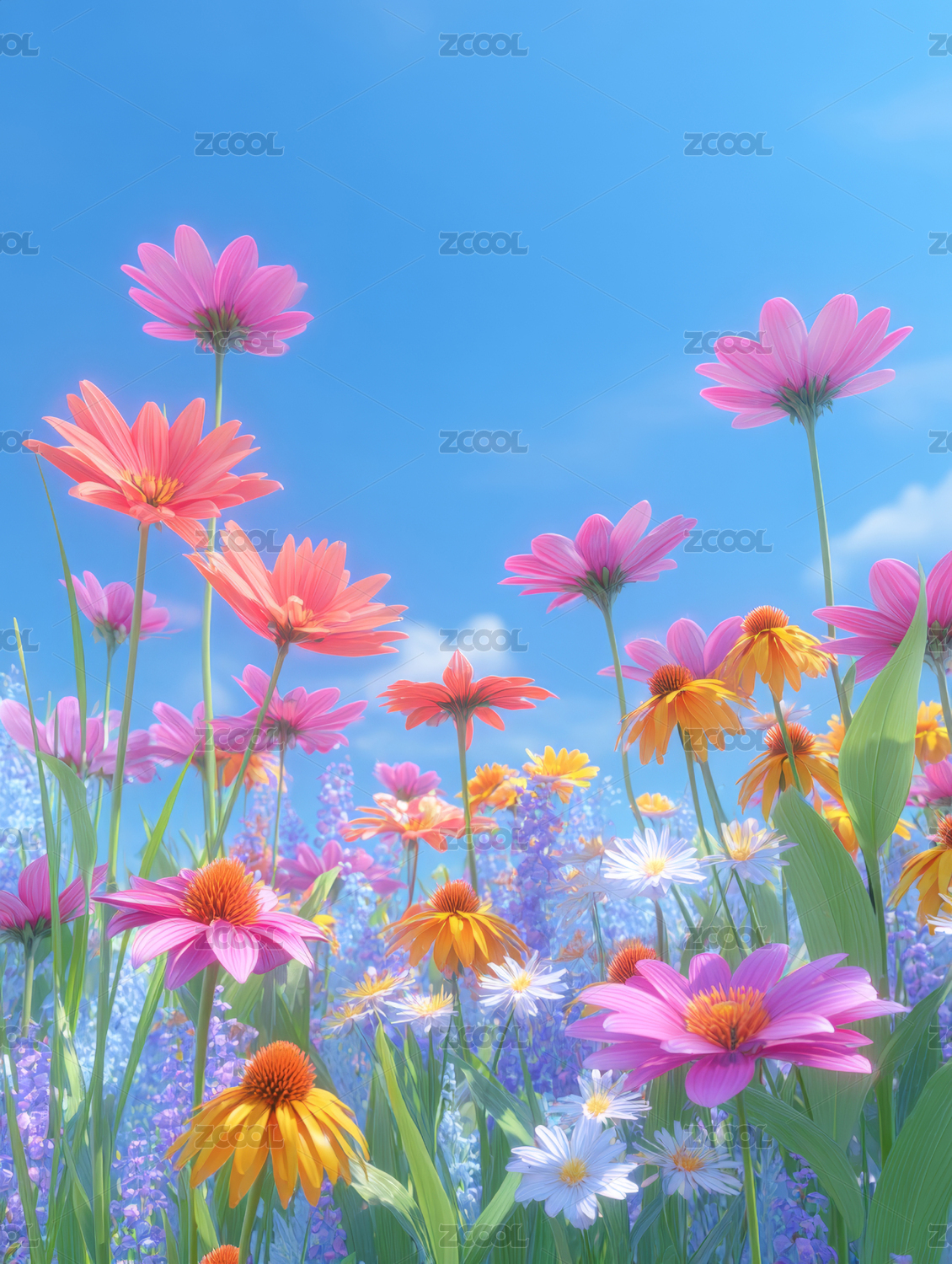 花朵,阳光,蓝天,绿叶,橙色,白色,自然,生机,温暖,春天
