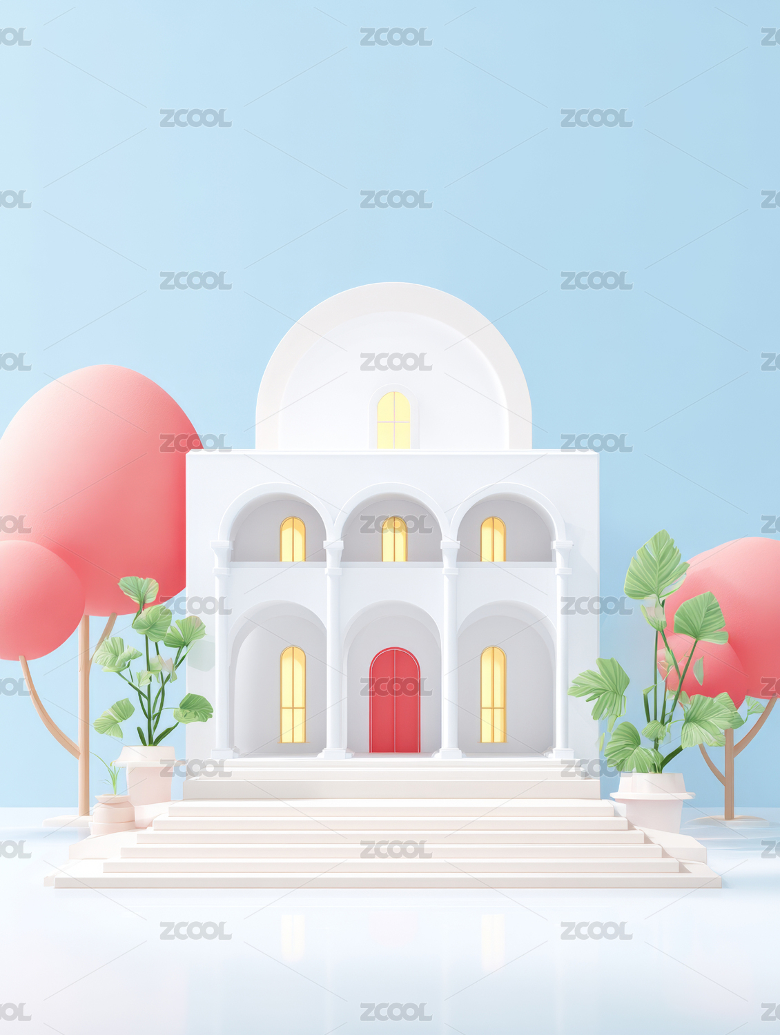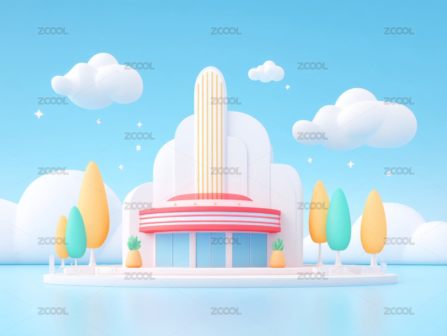 建筑,城市,树木,天空,云朵,色彩,卡通,风格,背景,水景