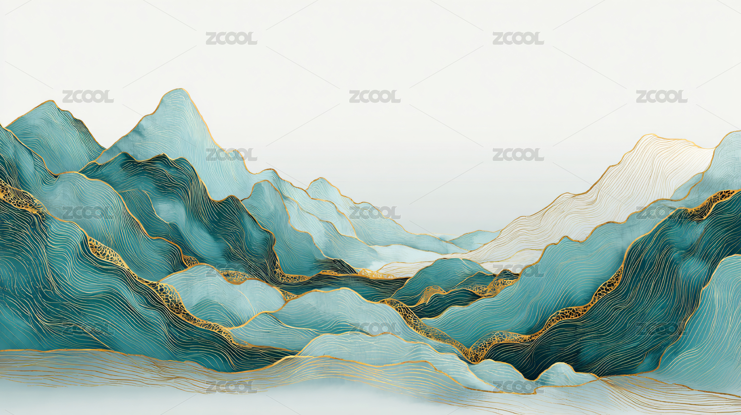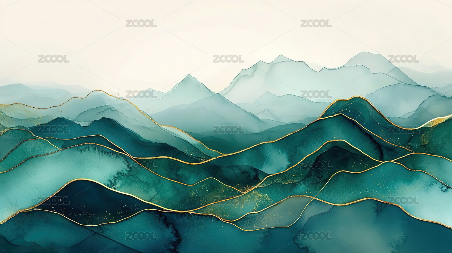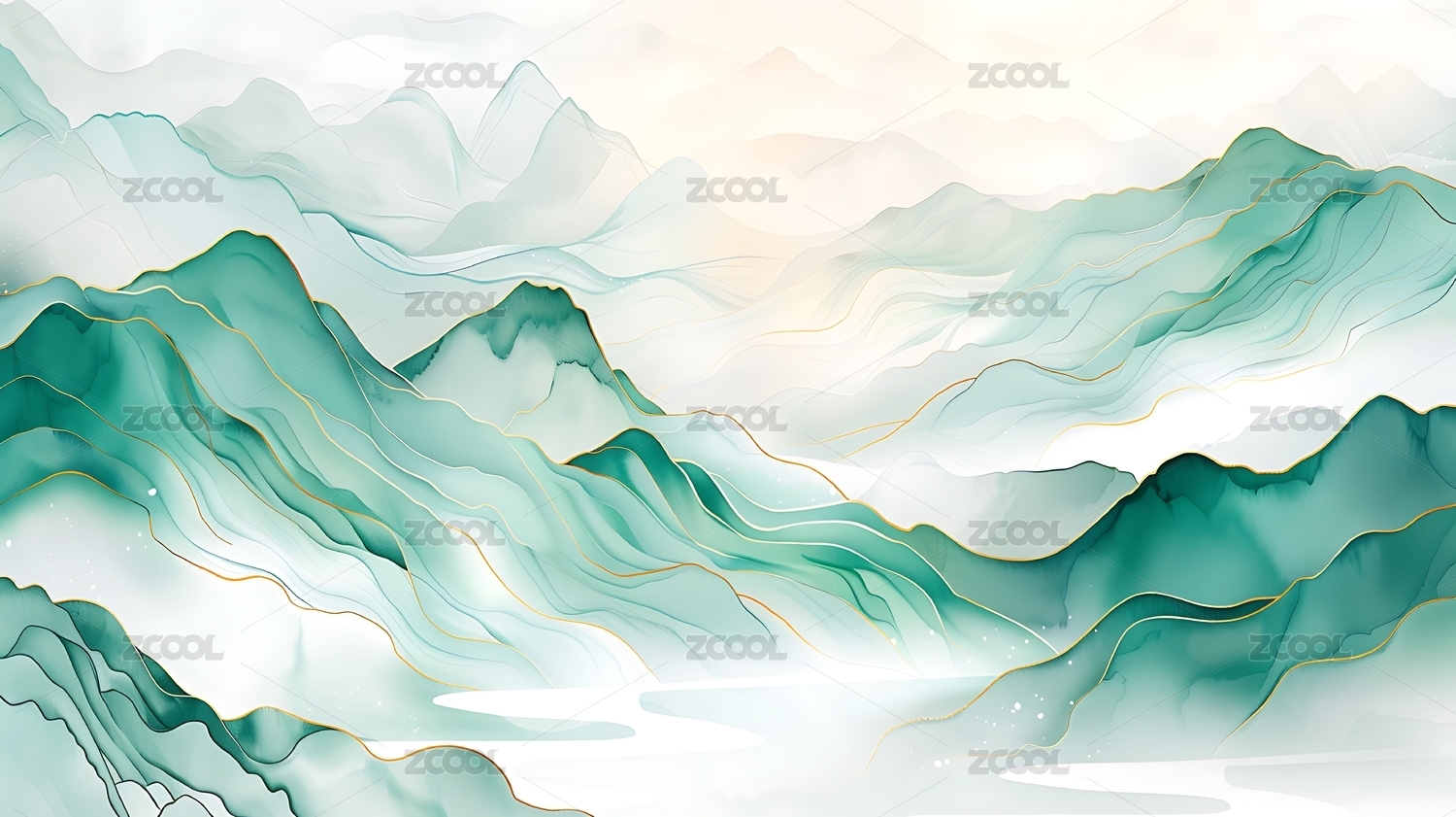 青绿山水金线新中式背景