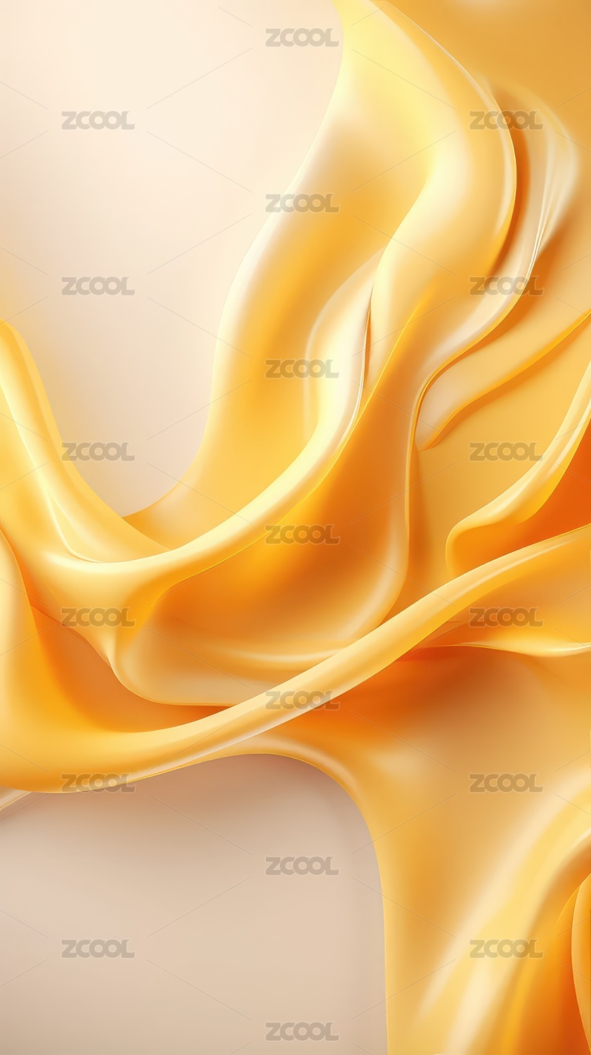 黄色丝绸般流畅的波浪抽象艺术