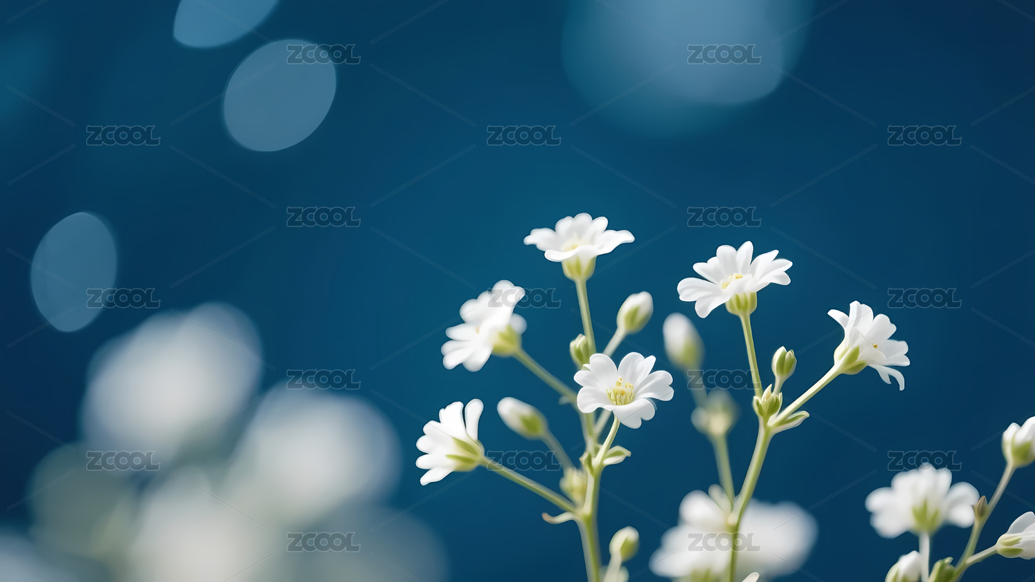 自然,清新,植物,山峦,静谧,柔和,光线,白花,绿茎,风景