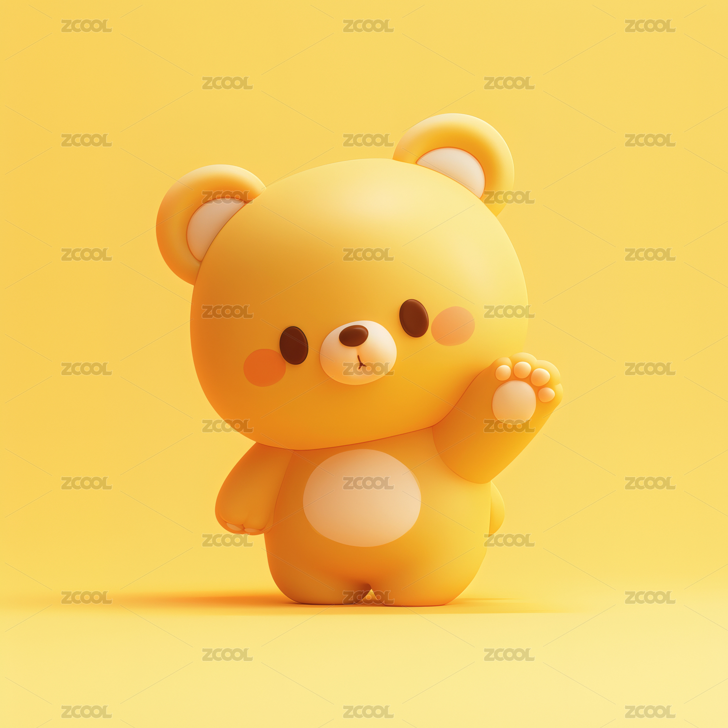 3D打招呼的可爱卡通小熊插画