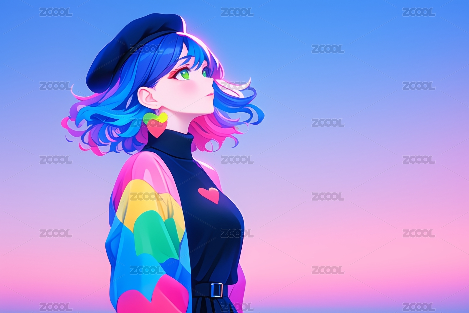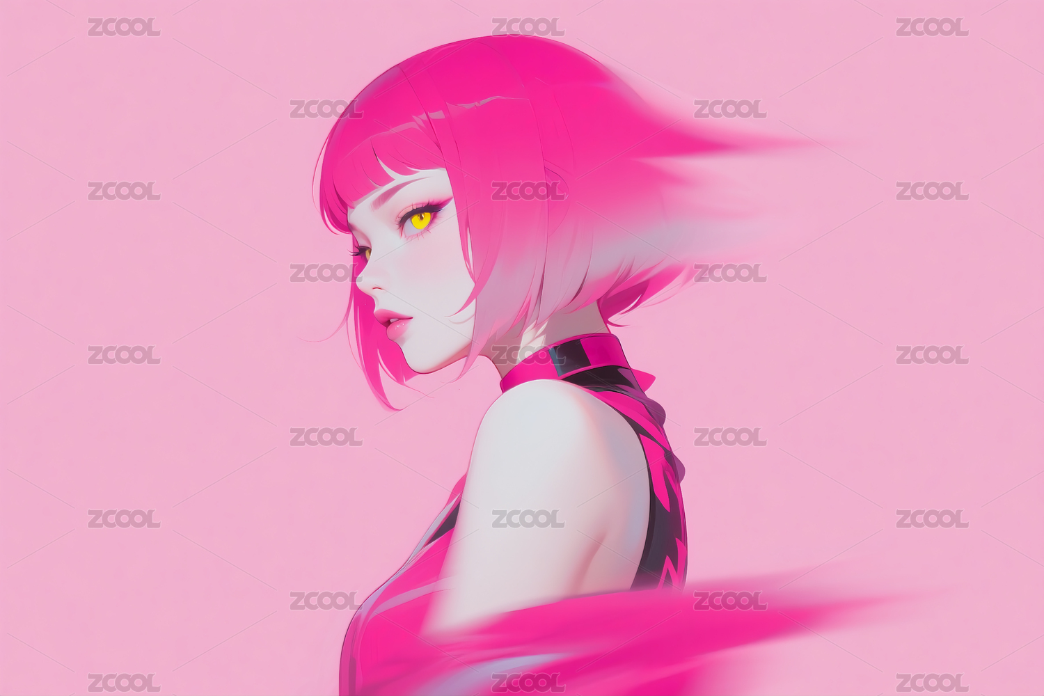 粉色,卡通,动漫,时尚,美女,女性,人物,数字,艺术,插画