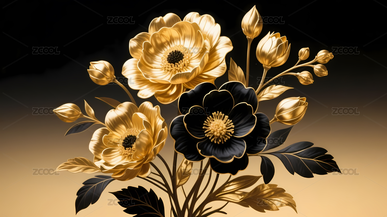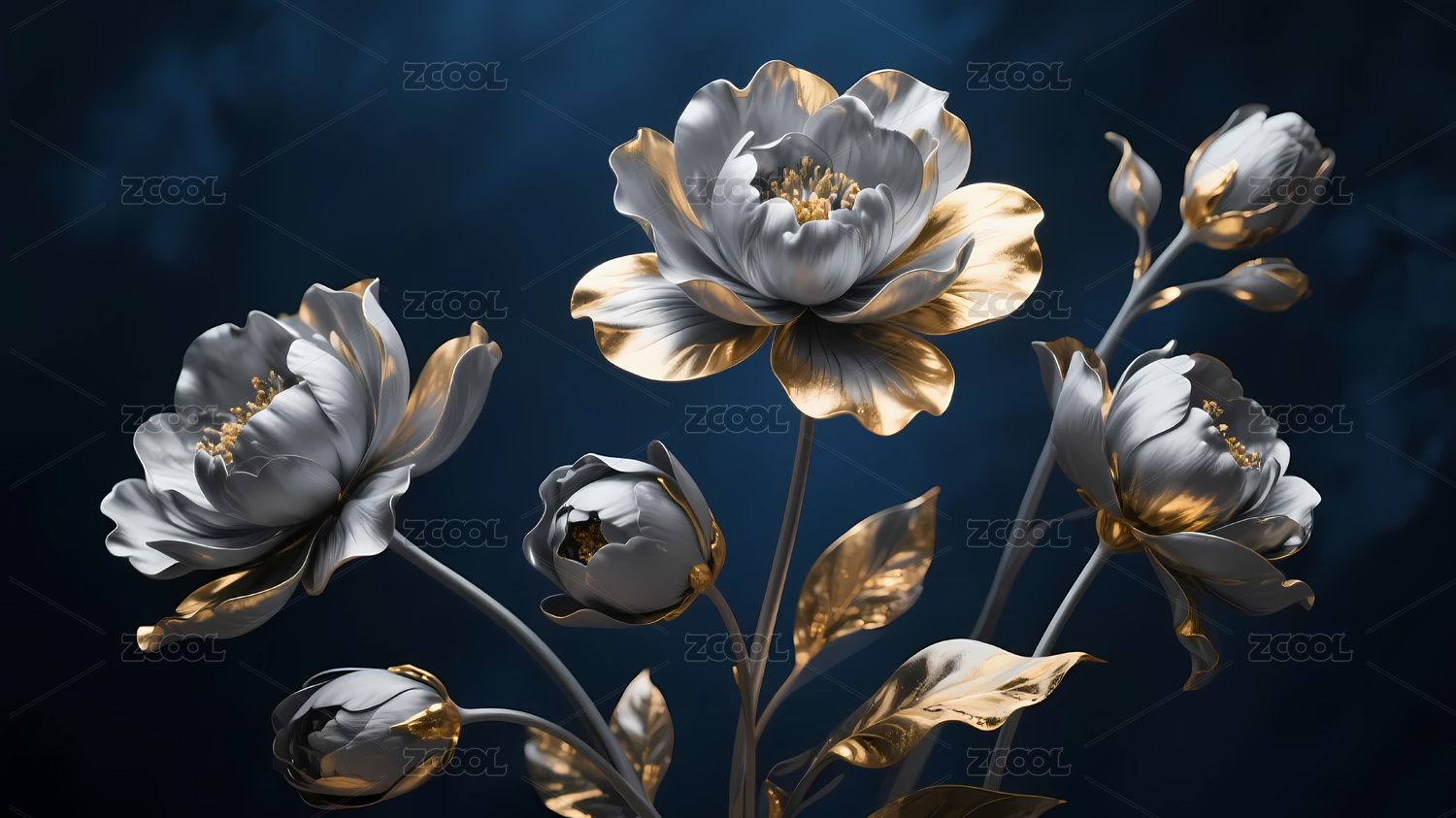 背景,自然,金色,叶子,花朵,白花,深蓝,高贵,典雅,花瓣