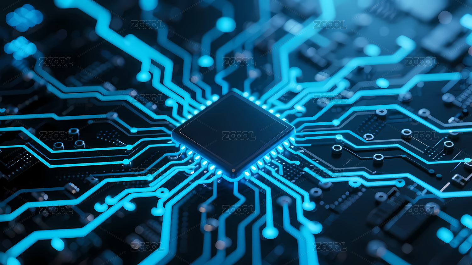 光斑,深蓝,蓝色,电路板,芯片,科技,未来,复杂,节点,线路