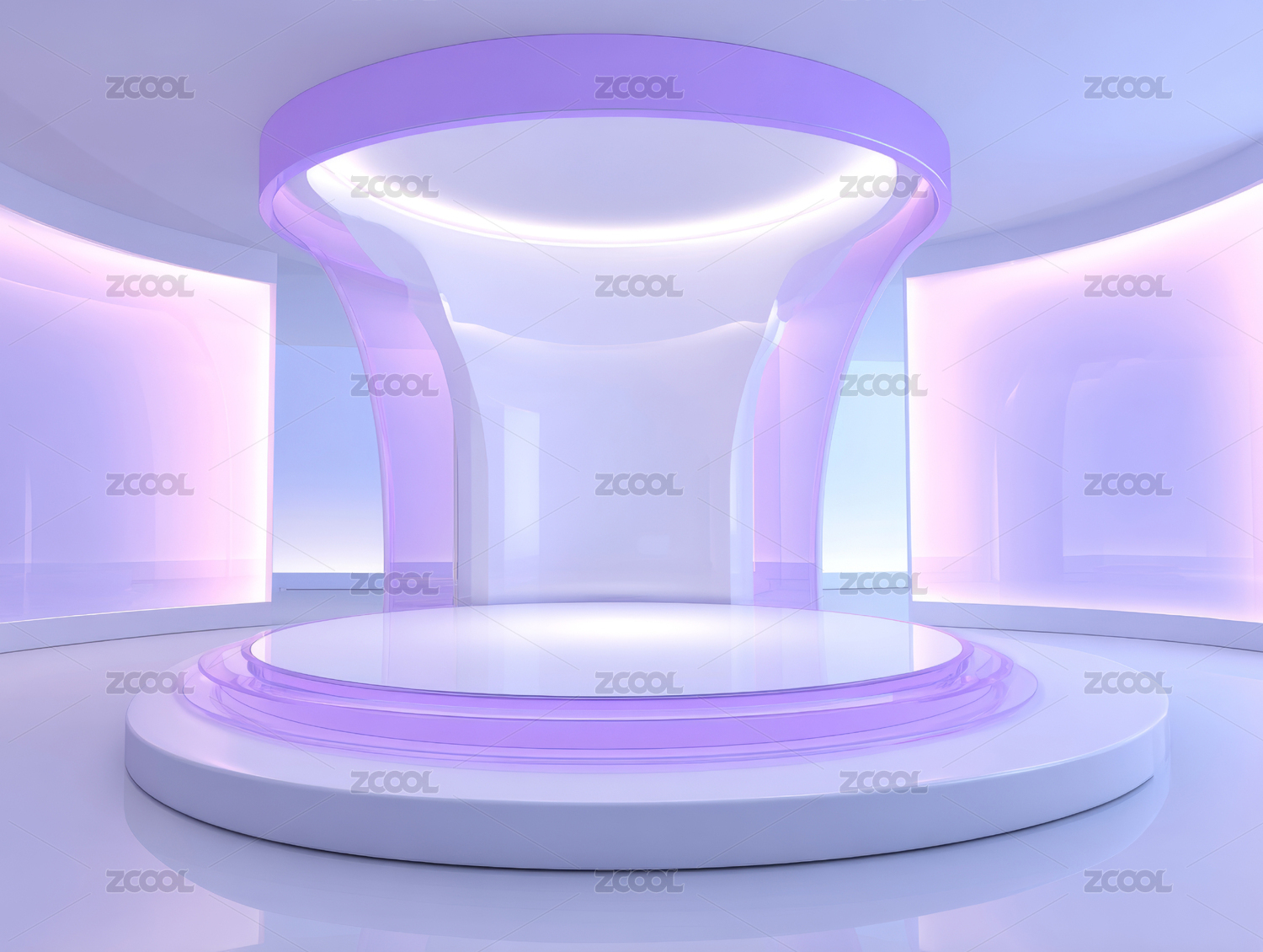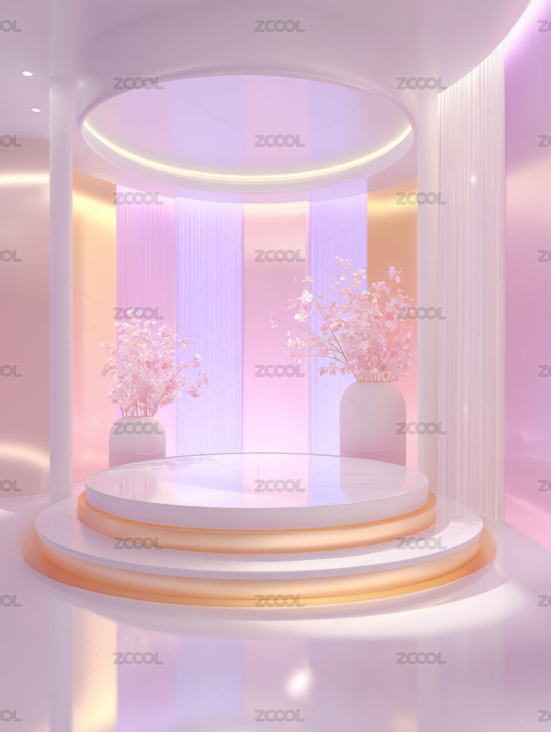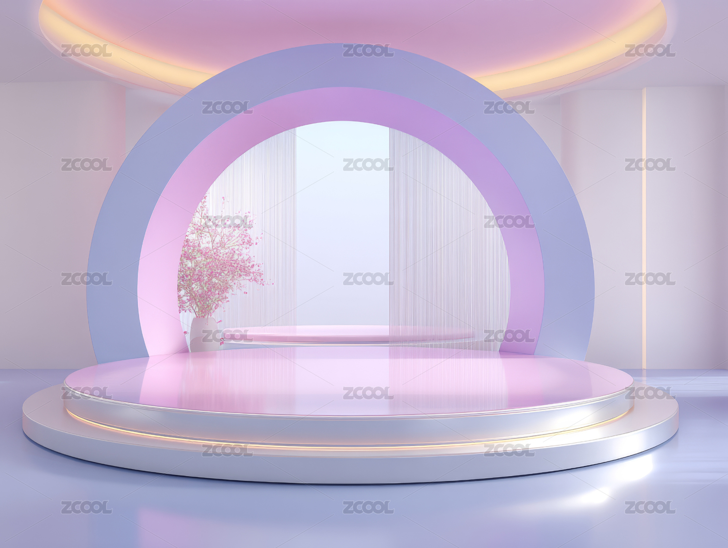 现代,简约,室内,设计,圆形,灯光,装饰,白色,植物,未来感