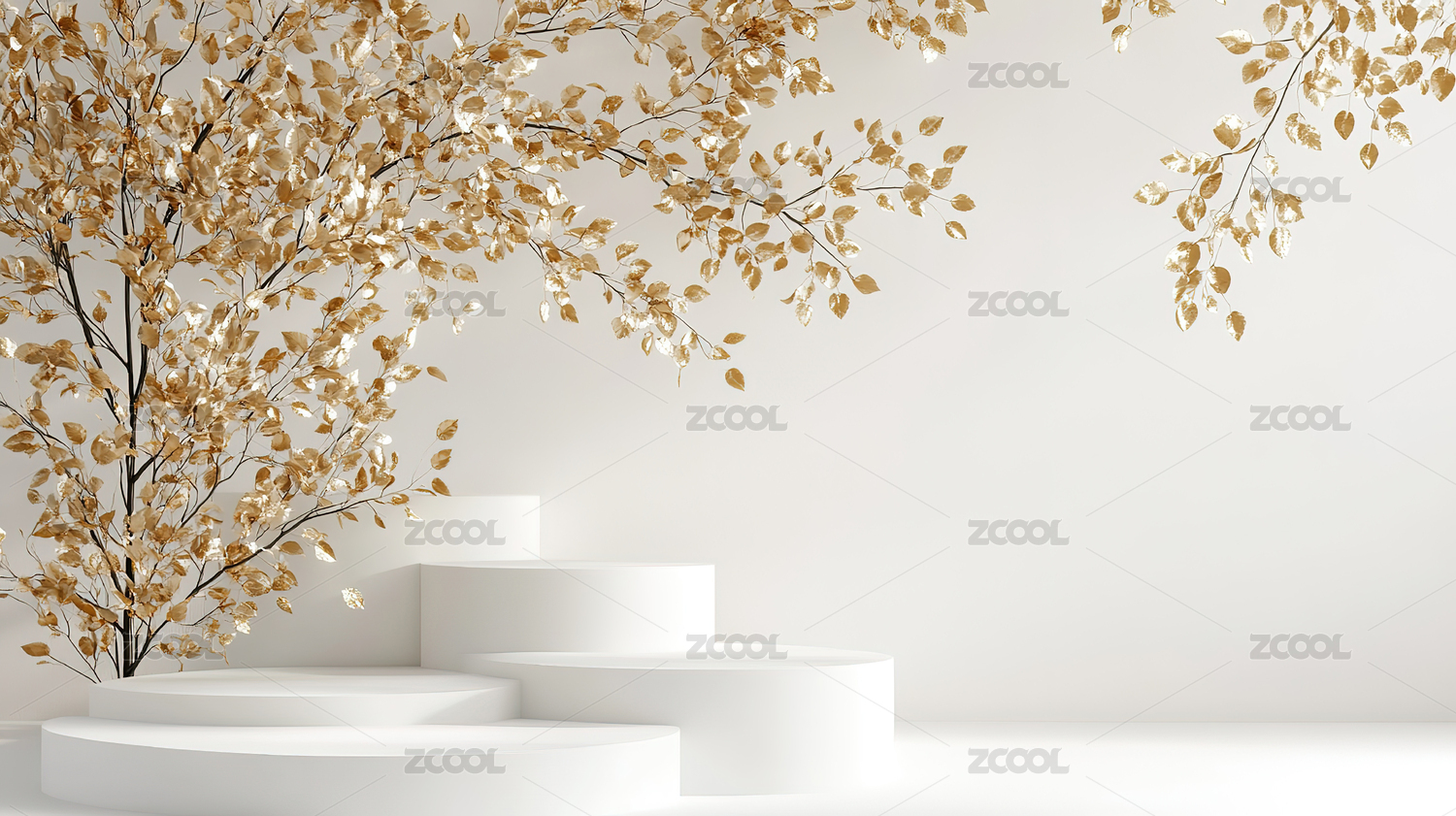 金色叶子装饰的简约展示台