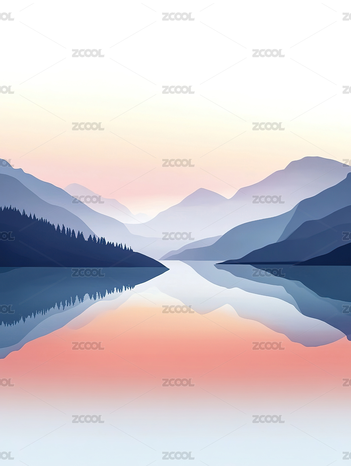 柔和, 宁静, 自然, 风景, 蓝色, 粉色, 朦胧, 天空, 静谧, 树木