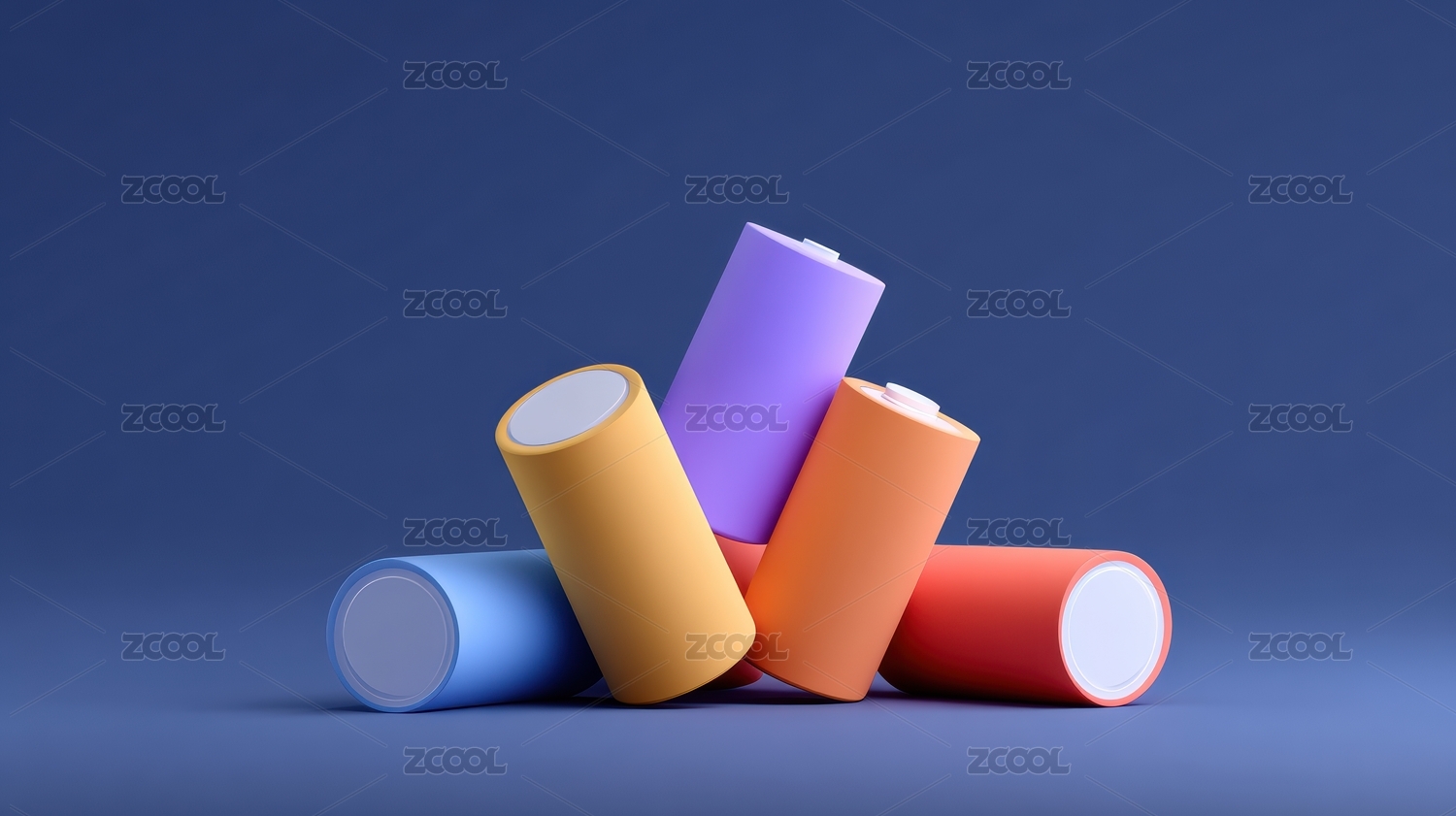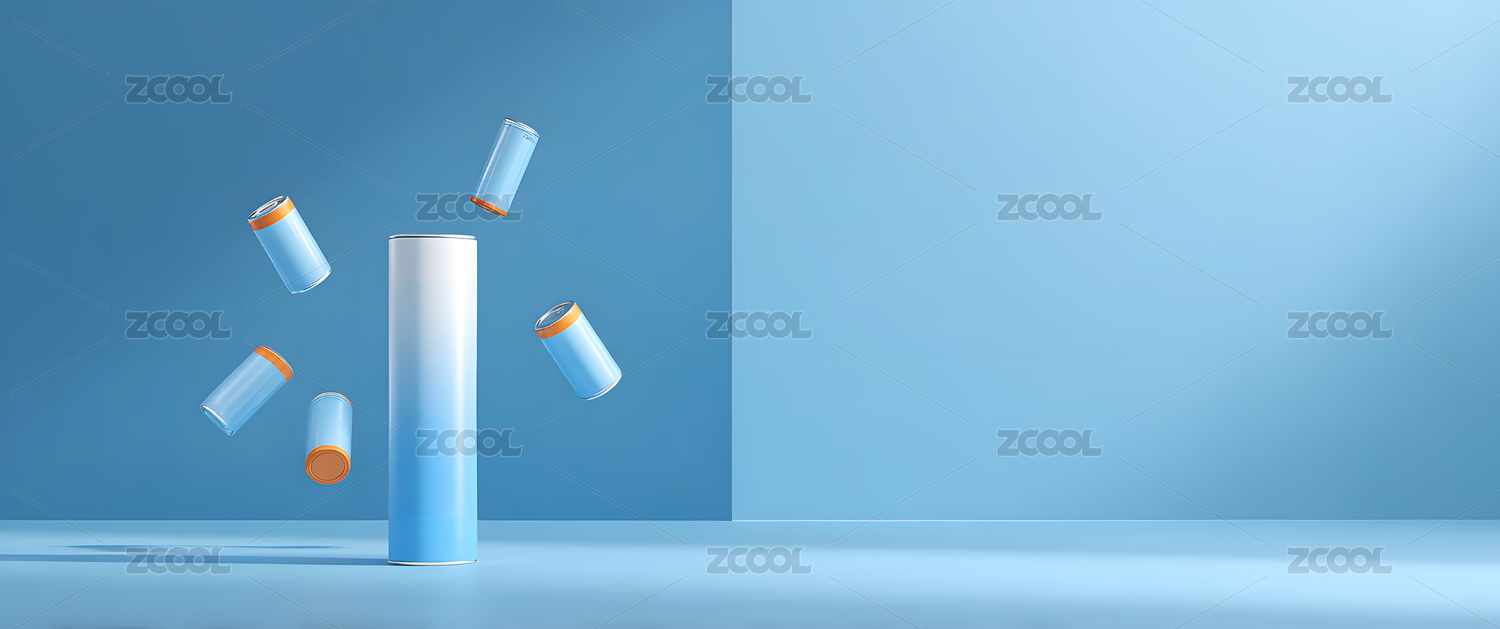 彩色渐变背景上创意电池展示