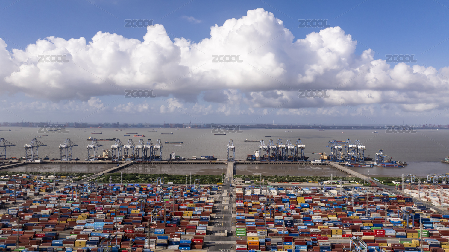 上海,外高桥,上海港,港口,航拍视角,航拍,货物集装箱,运输,商用码头,海港