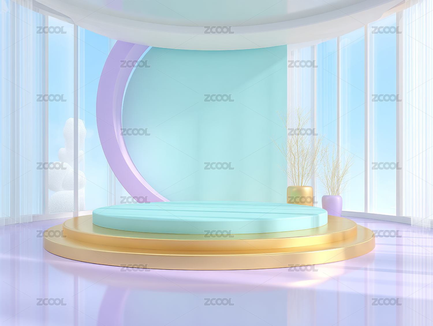 舞台,现代,简约,展示,蓝色,金色,室内,窗户,光线