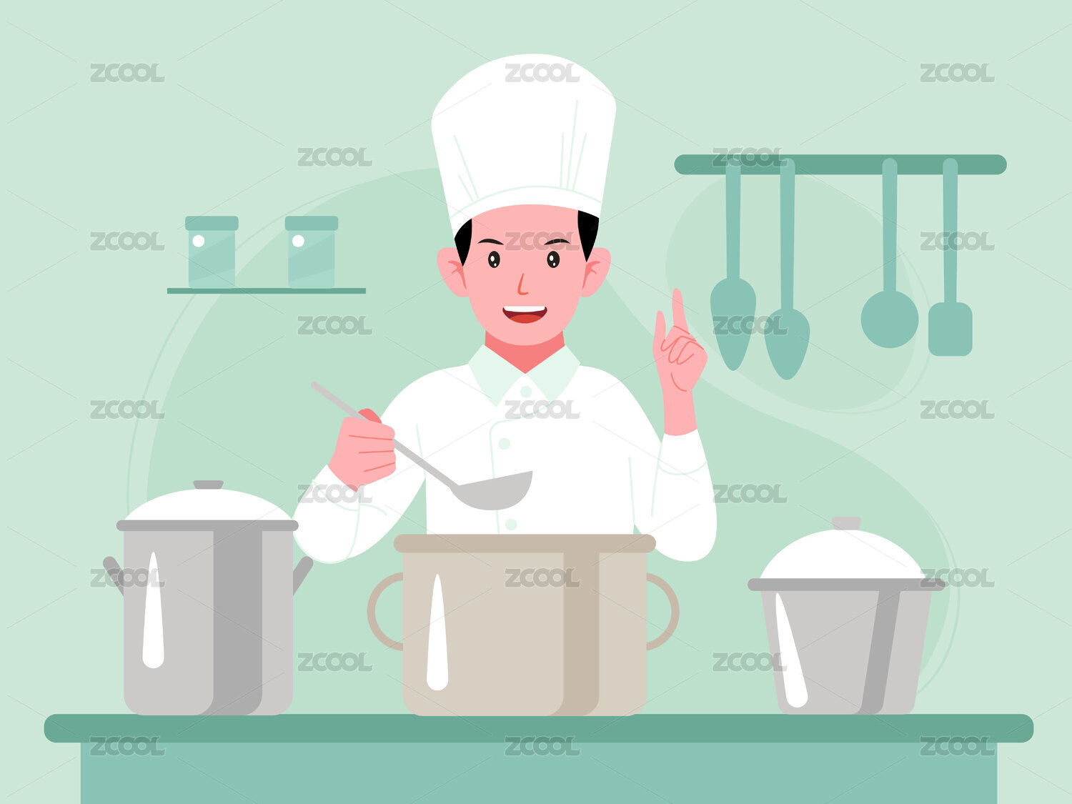 卡通手绘厨师烹饪煮饭插画