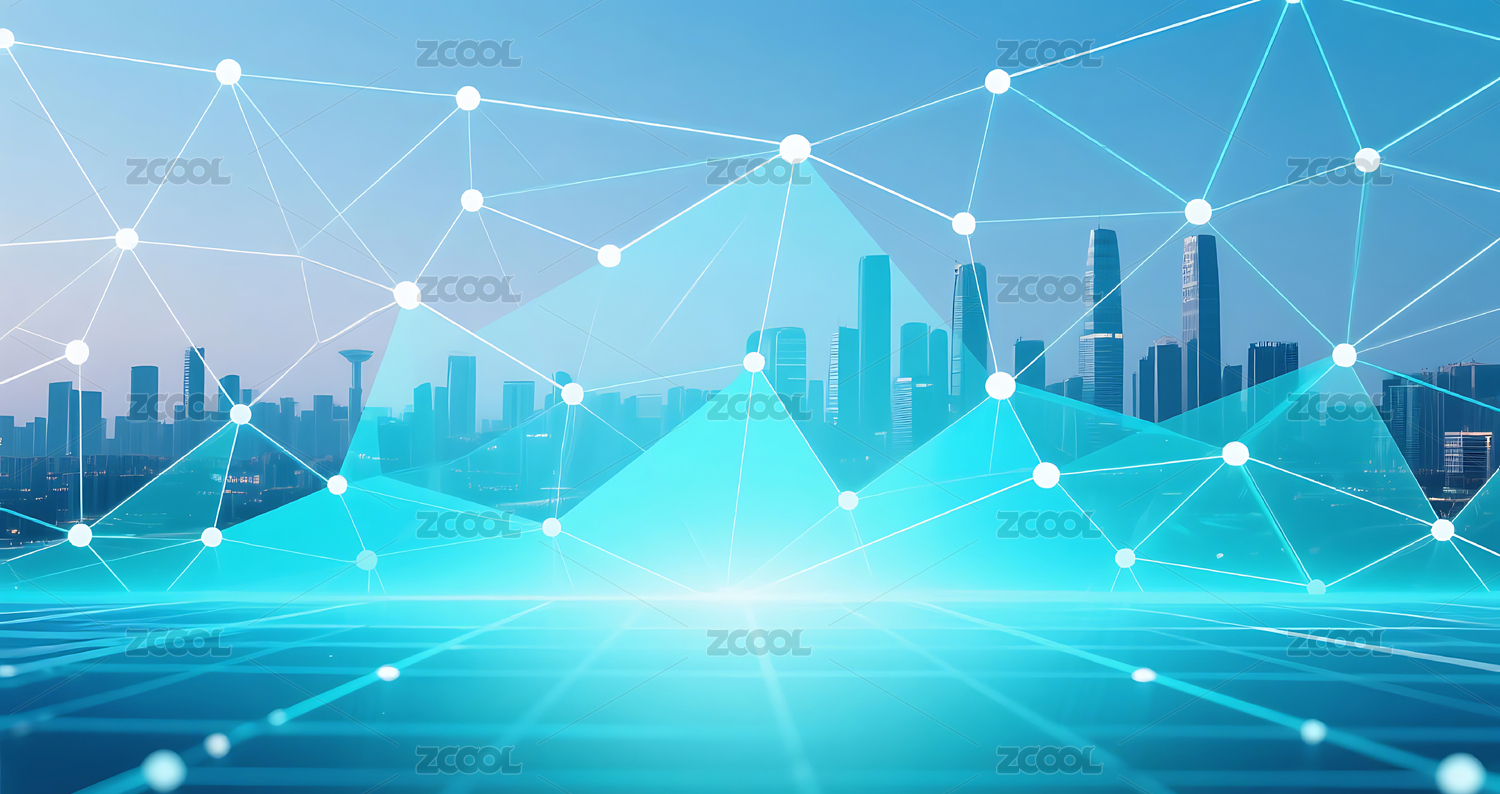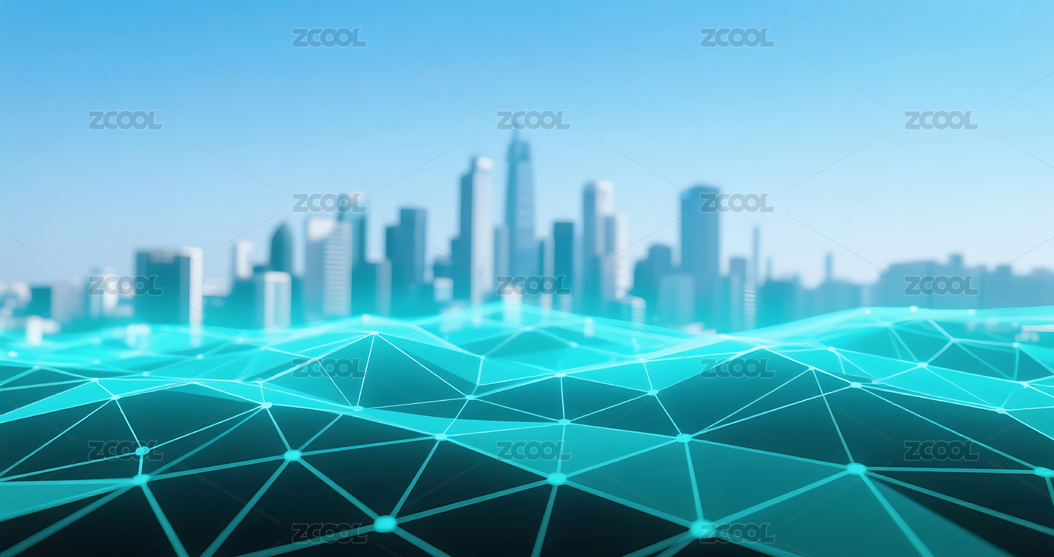 蓝绿色商务科技网络网格城市建筑天际线背景