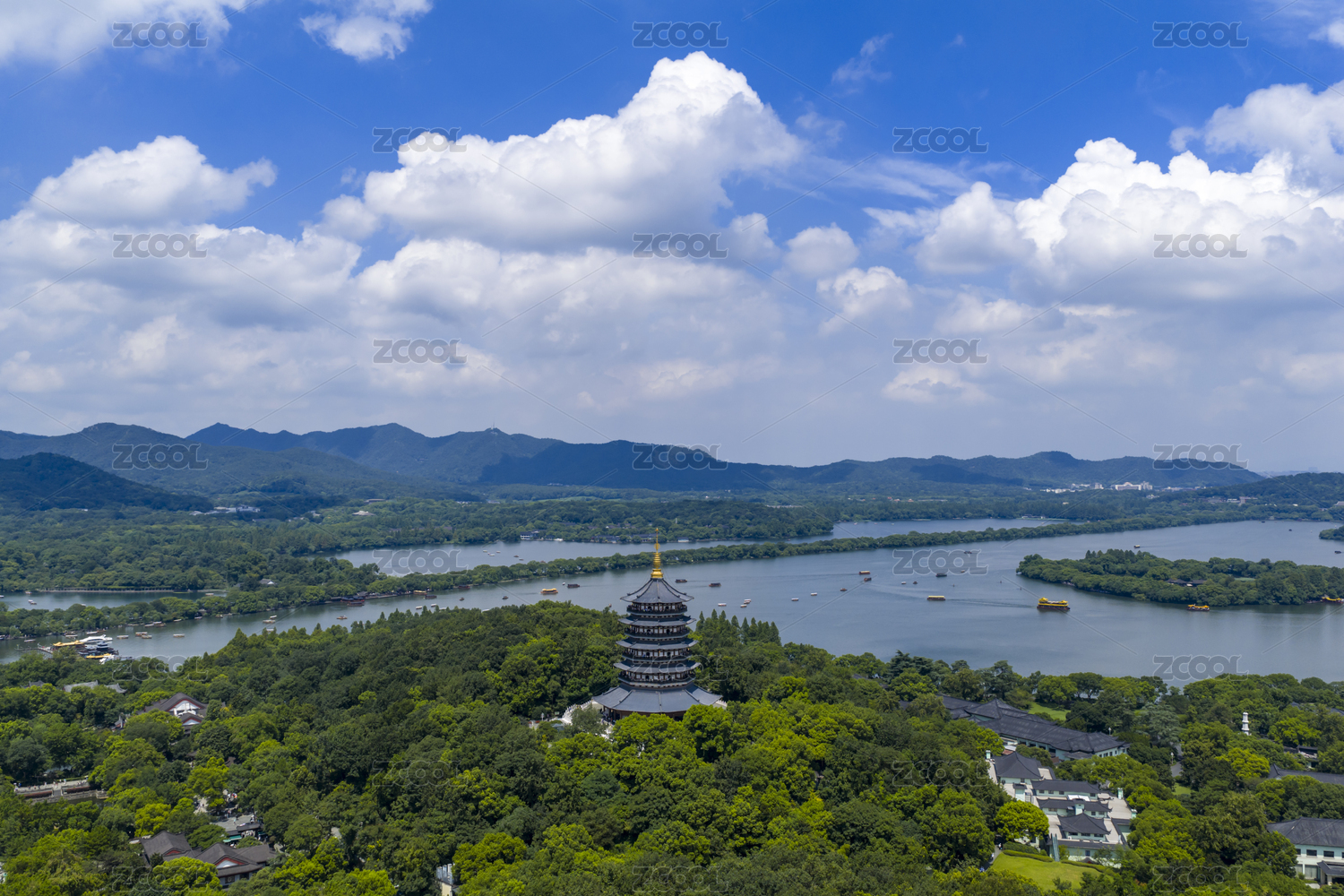 西湖,中国,杭州,自然,旅游目的地,地标,著名景点,旅游,航拍视角,西湖十景