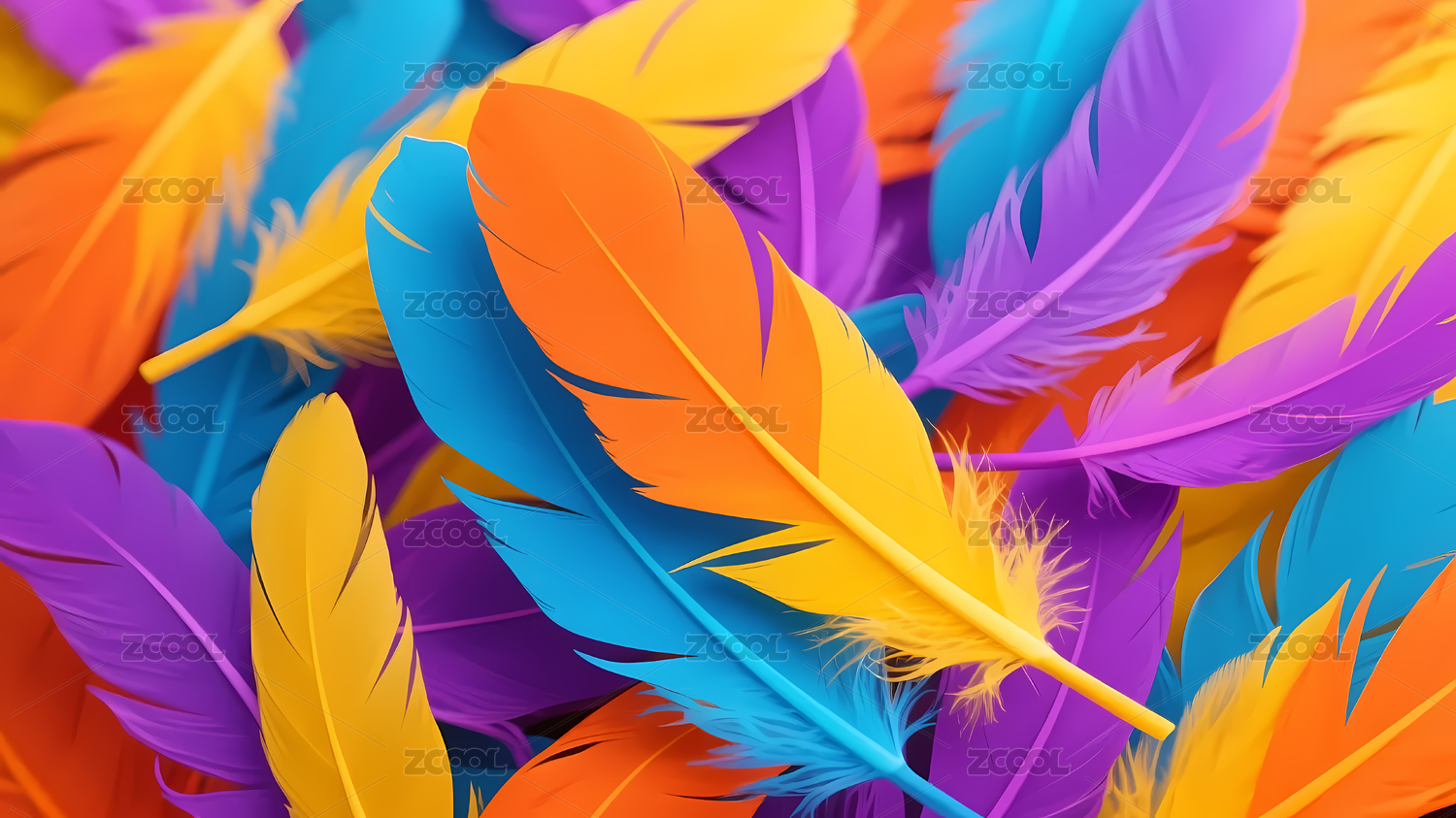 橙色,蓝色,羽毛,活力,交织,鲜艳,色彩,黄色,紫色,密集
