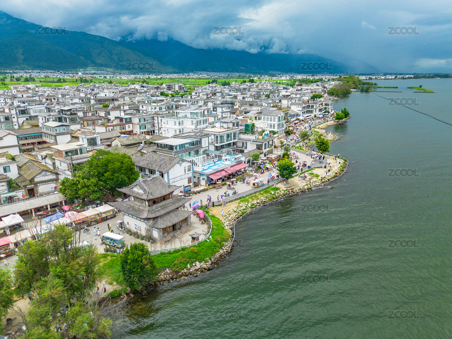 洱海,自然风光,绿植,湖泊,沿岸景观,草地,树木,大理,云南,苍山