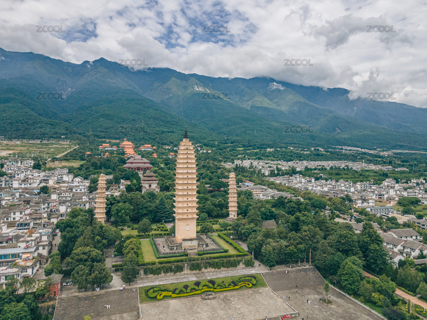 云南,大理,崇圣寺,寺庙,寺院,佛教,塔,古塔,古建筑,航拍视角