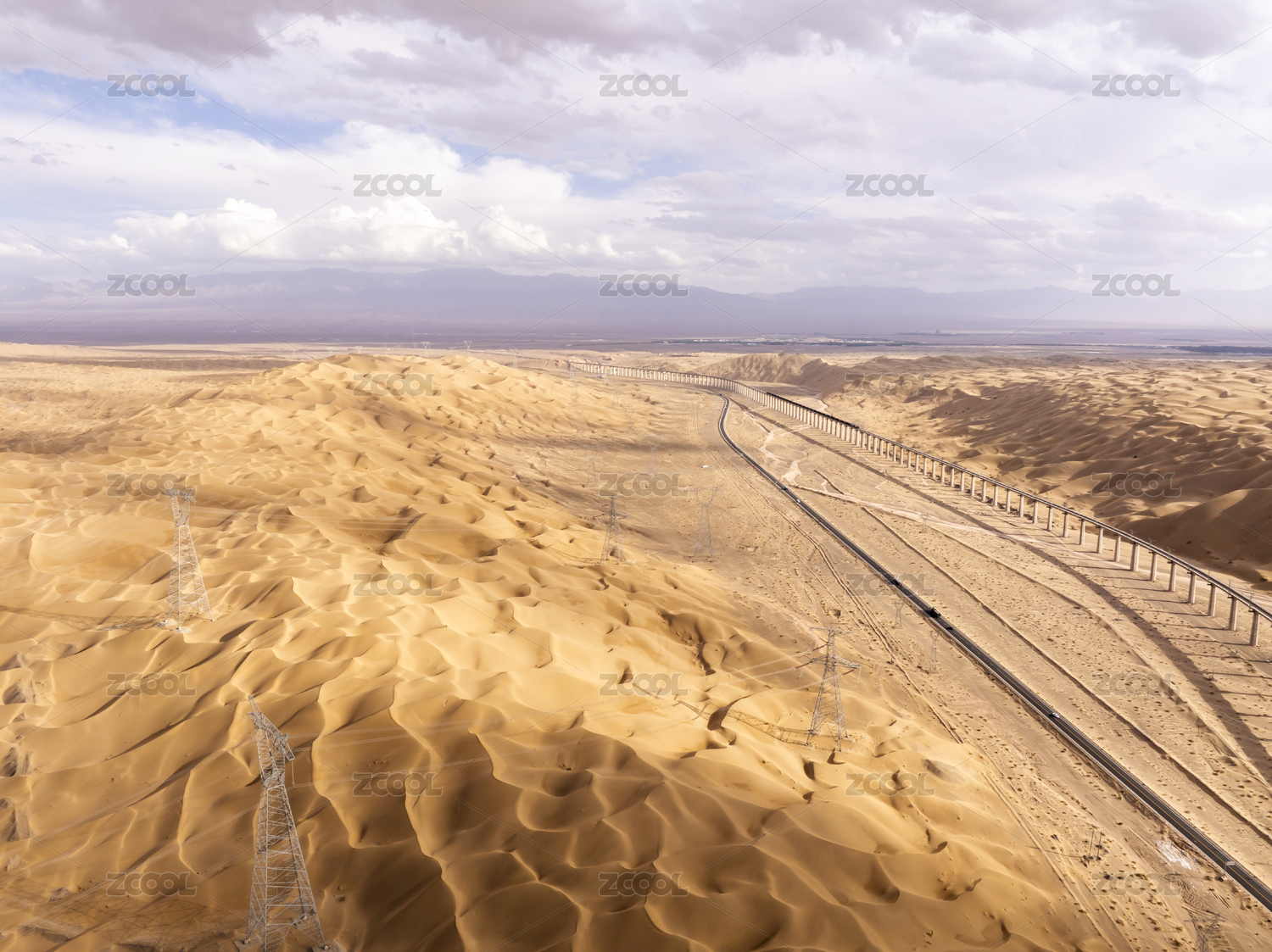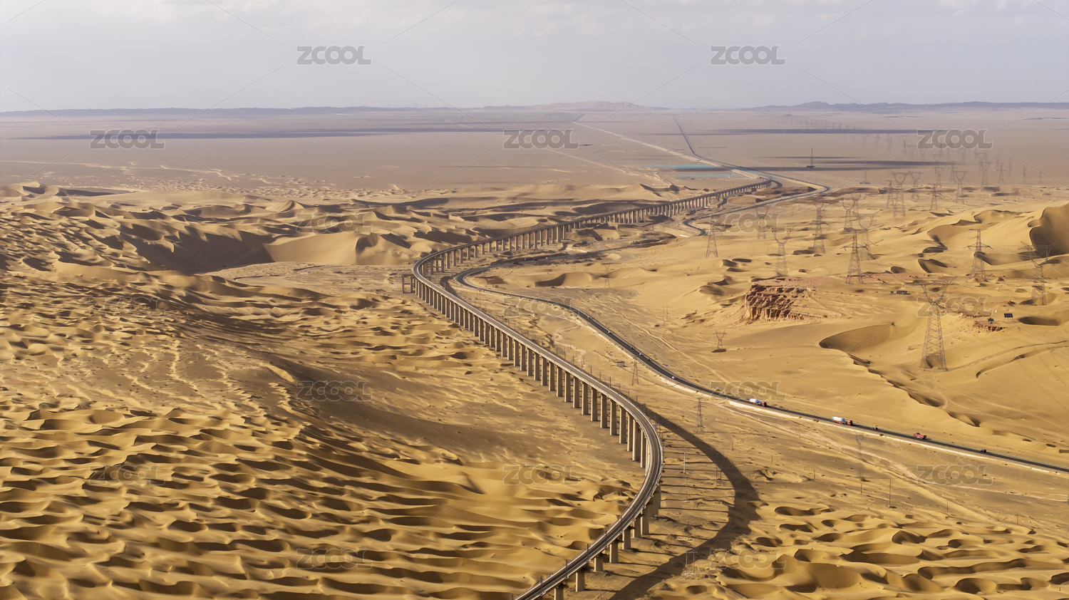 中国新疆若羌县和若铁路戈壁沙漠自然风光