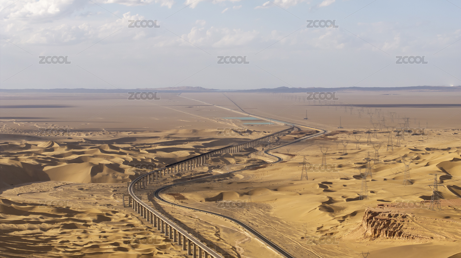 航拍青海柴达木盆地荒漠中的电力运输设施